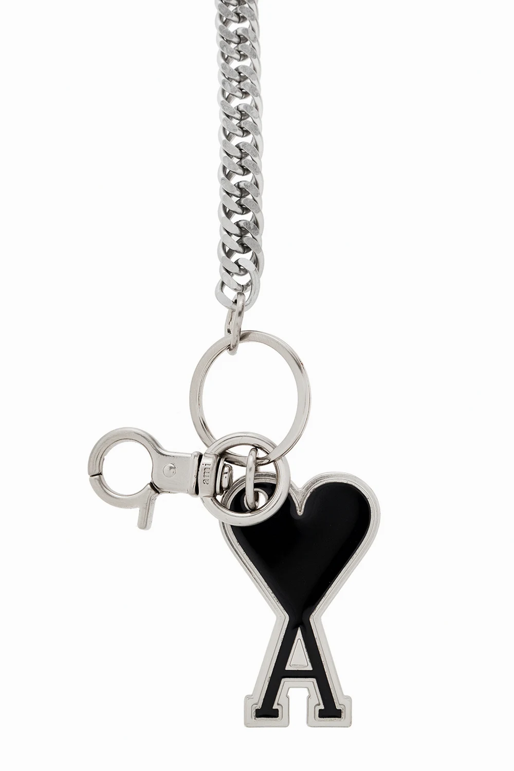 Silver-tone trousers chain from Ami Alexandre Mattiussi. Embellished with a black and silver-tone Ami de Coeur pendant, this item features lobster clasp fastenings and keyrings.