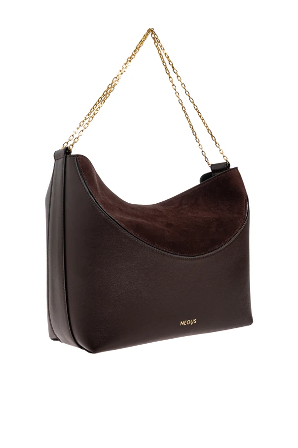 Die Pavo West Schultertasche von NEOUS begeistert mit raffinierter Schlichtheit und einem hervorragenden Gespür für Form. Ihre rechteckige, sanft abgerundete Silhouette betont zeitlose Eleganz, während die Kombination aus glattem, tief braunem Glattleder und einem edlen Veloursleder-Panel ein harmonisches, luxuriöses Gesamtbild schafft.