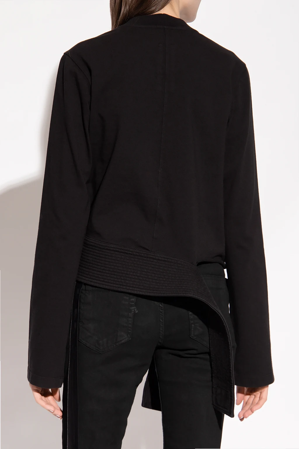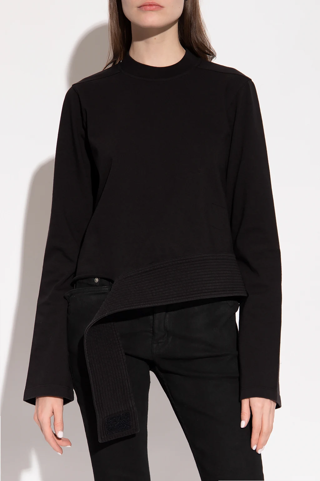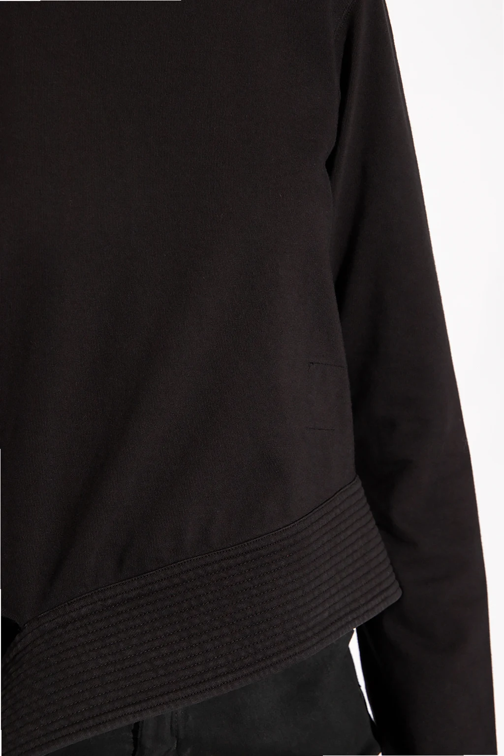 Black crewneck sweatshirt from Rick Owens DRKSHDW. Crafted from cotton, this long sleeve design has a decorative trim at the hem.