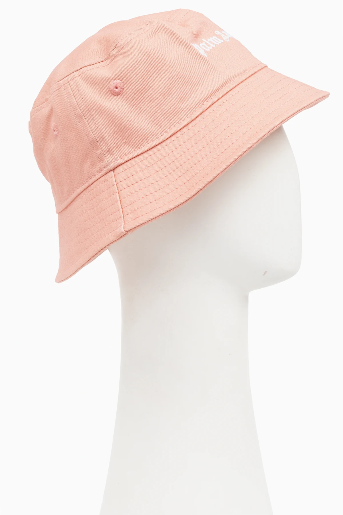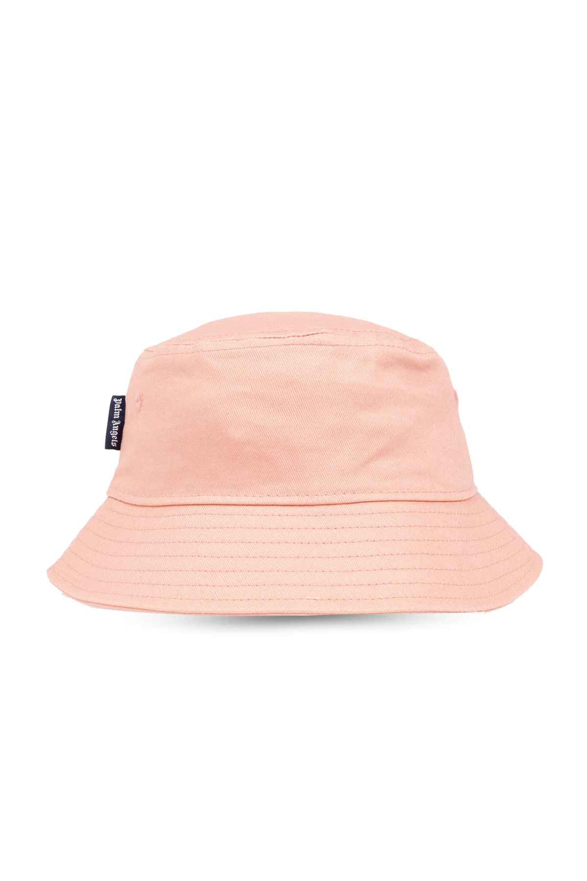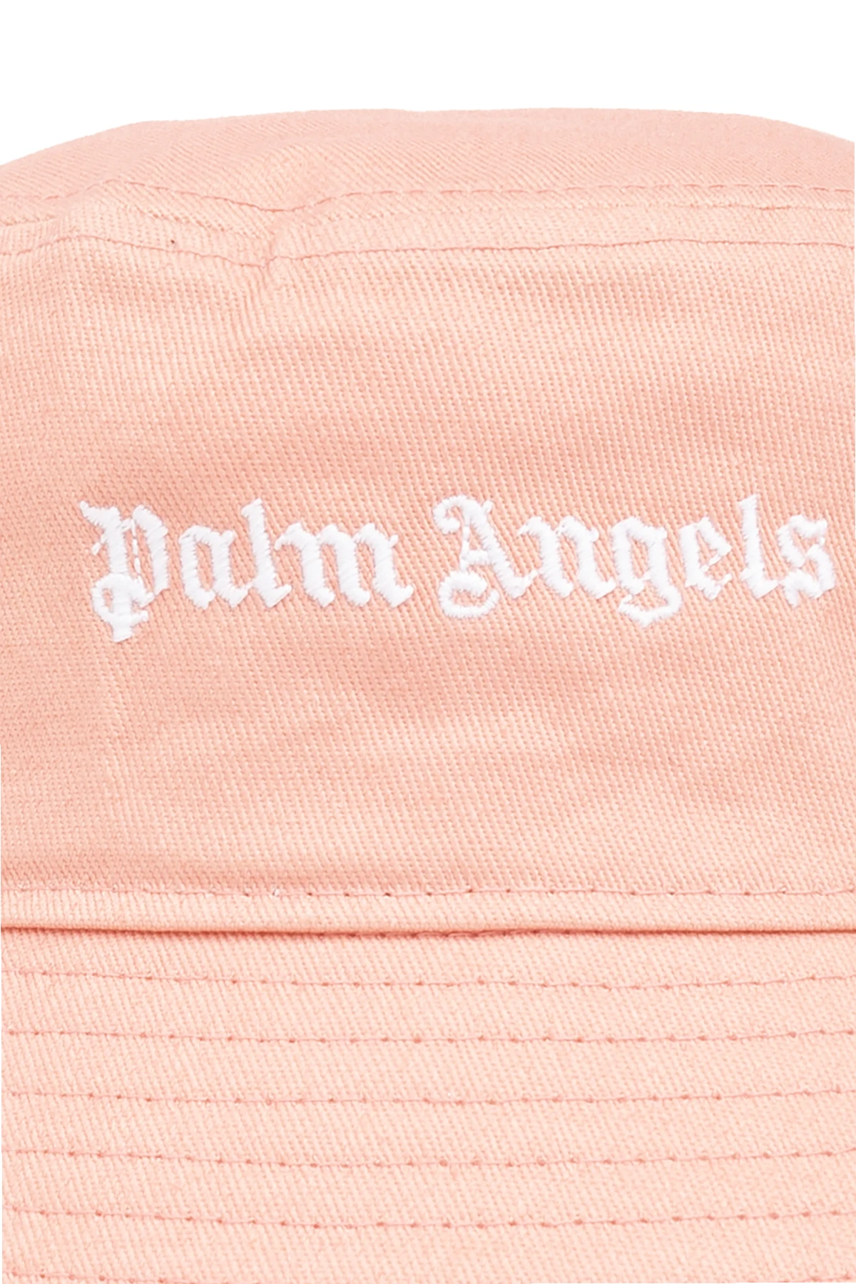 Orange bucket hat from Palm Angels. Crafted from cotton, this item is embroidered with a logo pattern in white.