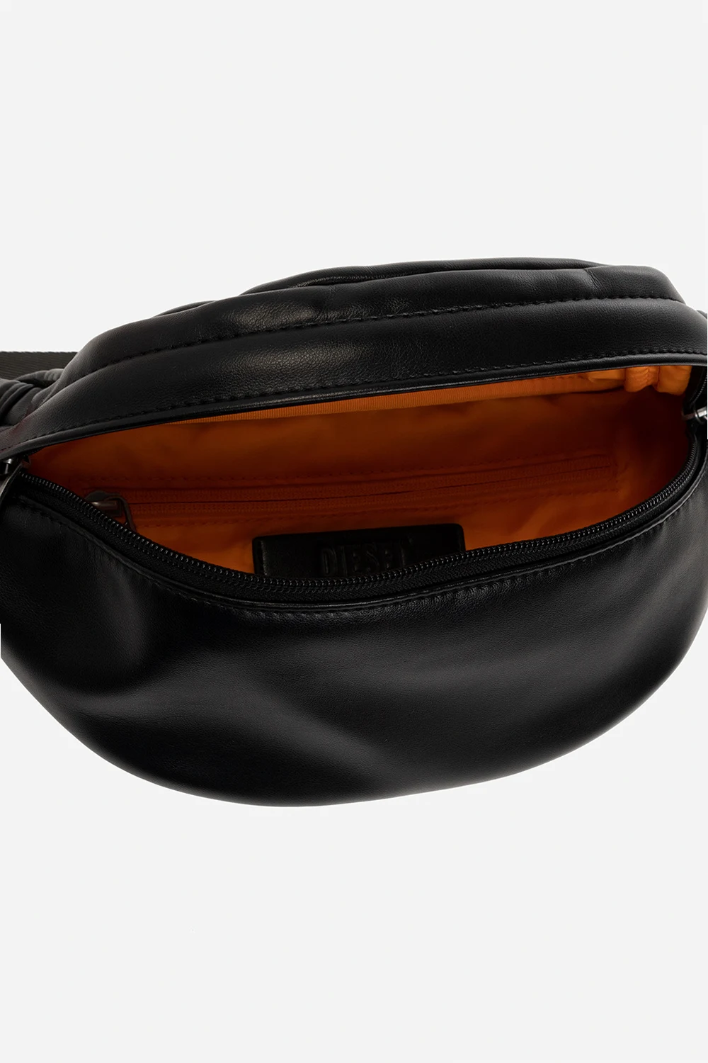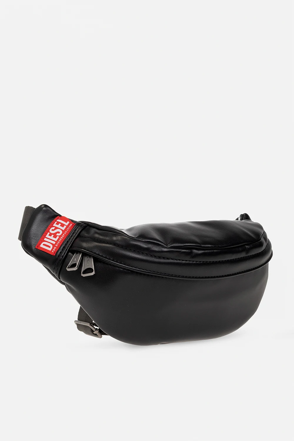 Black 'GOA' belt bag from Diesel. Emblazoned with a red and white logo patch, this design features a two-way zip fastening, a zip pocket at the back, an adjustable strap and one internal compartment with a zip pocket.