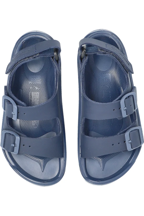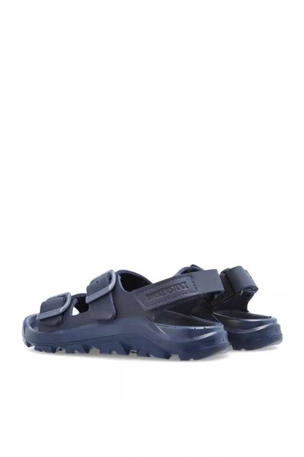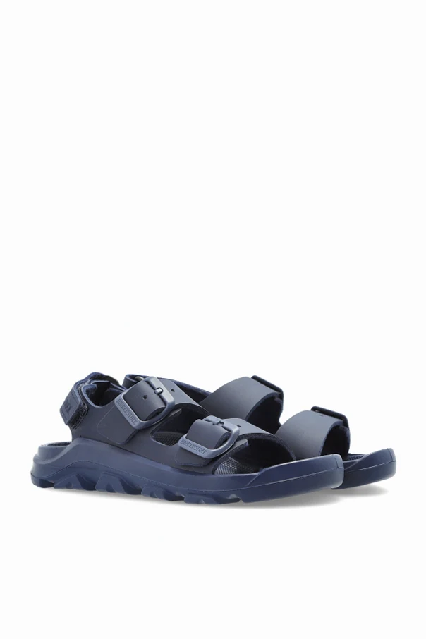 Die charakteristischen, breiten Riemen mit Schnallen sowie der zusätzliche Klettverschlussriemen an der Ferse unterstreichen die sportliche Funktionalität und die präzise Verarbeitung. Die glatte Oberfläche und die dezente Prägung mit dem Herstellerlogo verleihen diesen Sandalen ihren außergewöhnlichen Charakter.