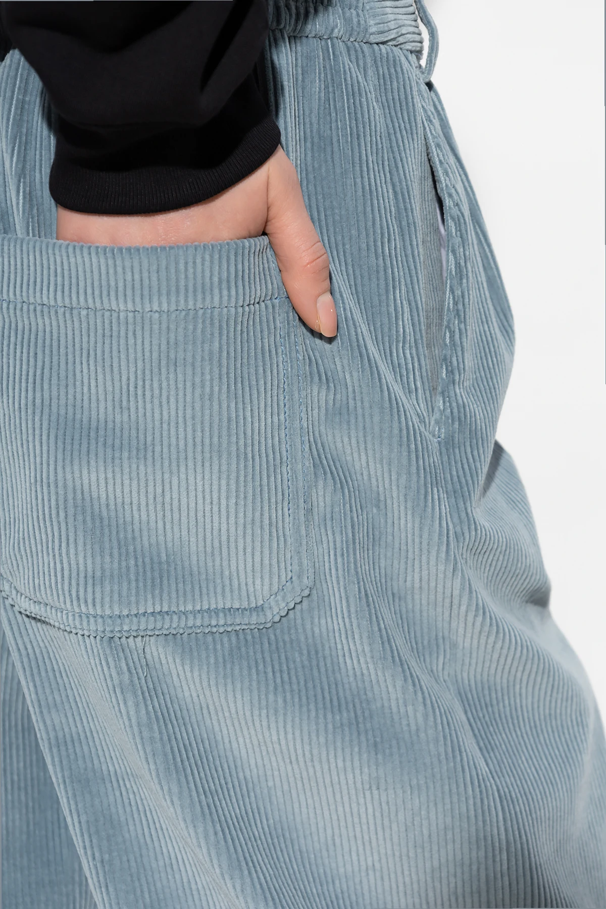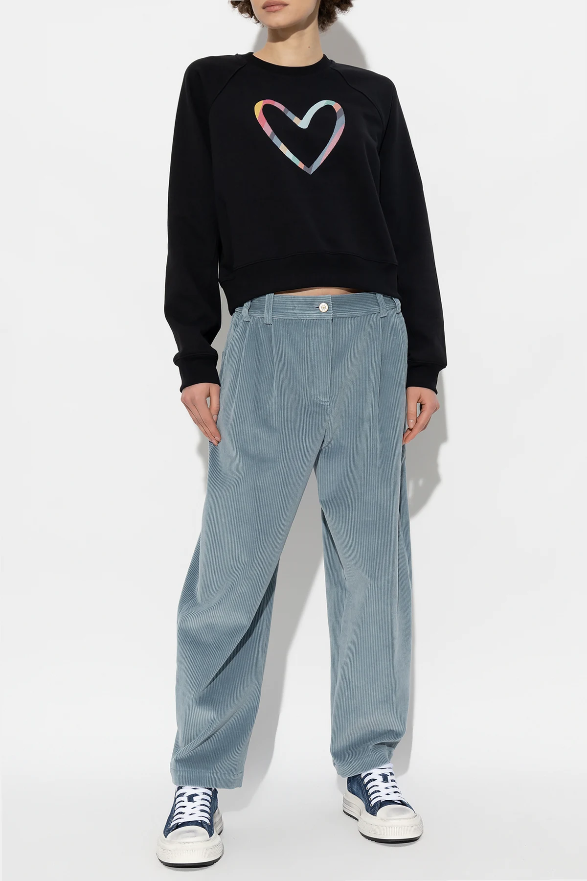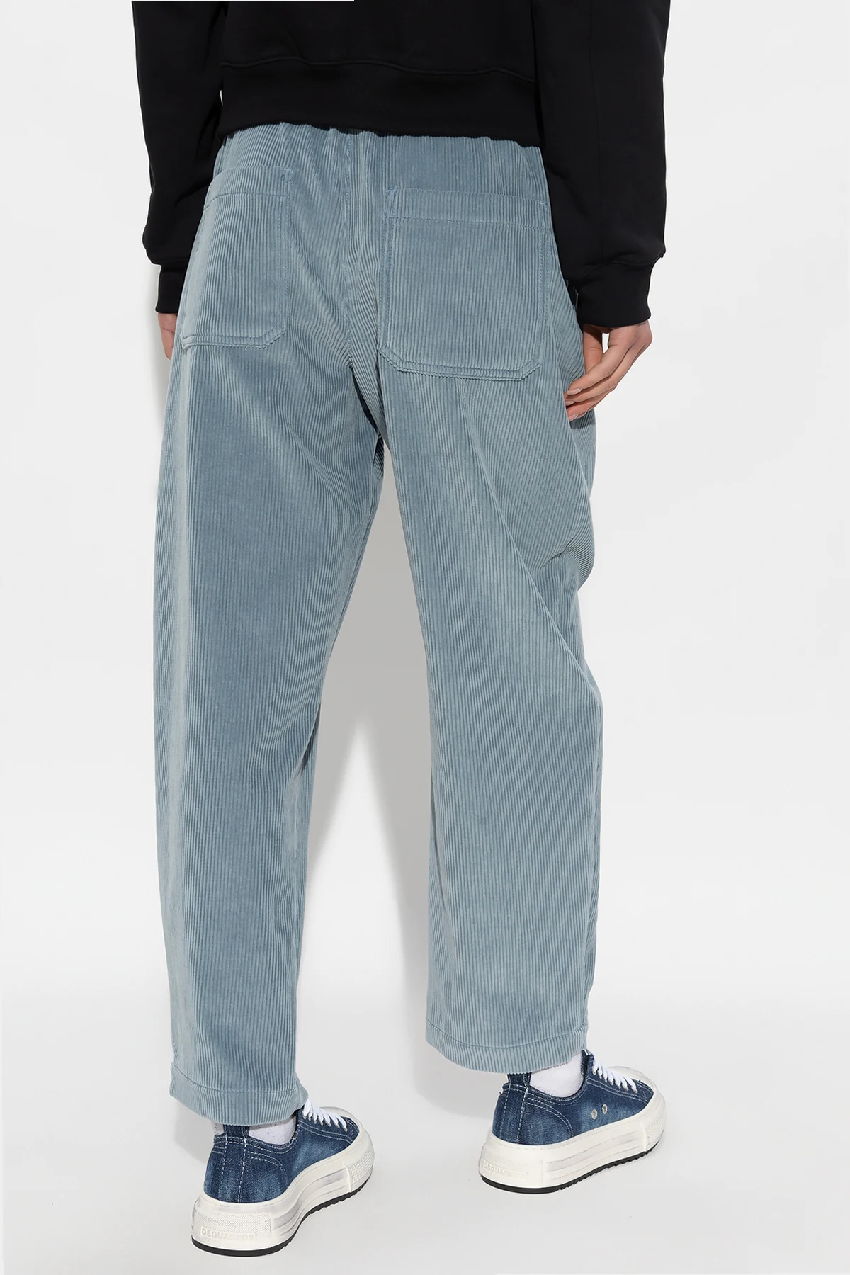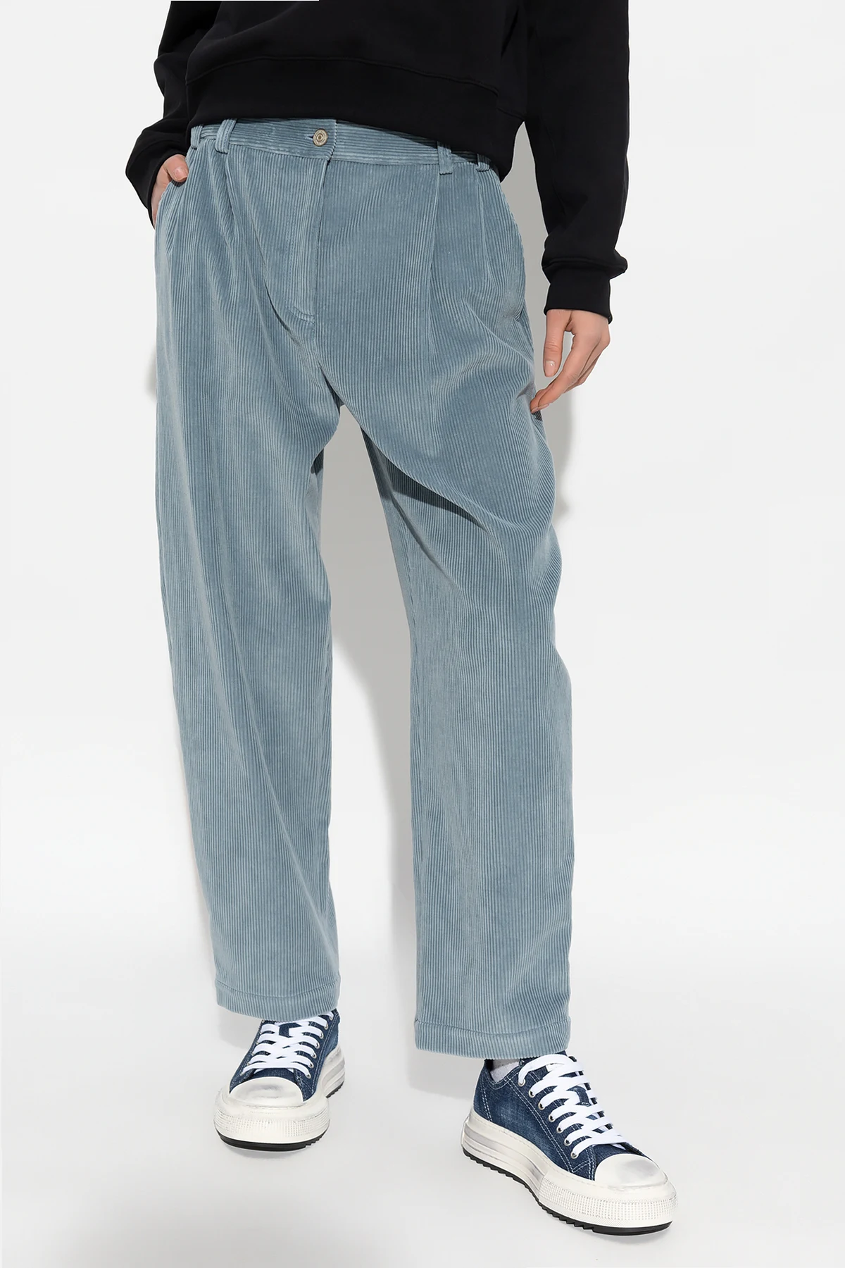 Blue loose-fitting trousers from PS Paul Smith. Made of cotton corduroy, this high-waisted pair features zip and button fastening, pleat details on the front, two front pockets and two back pockets.