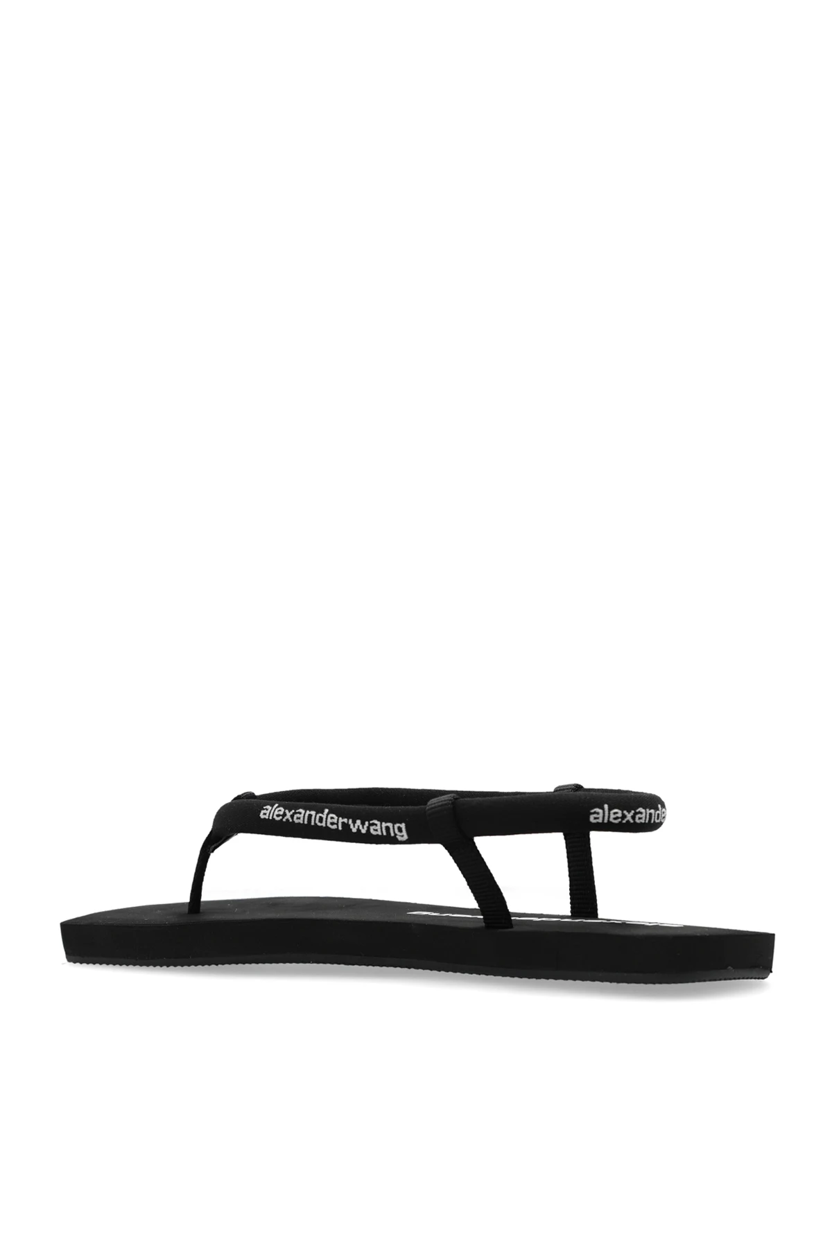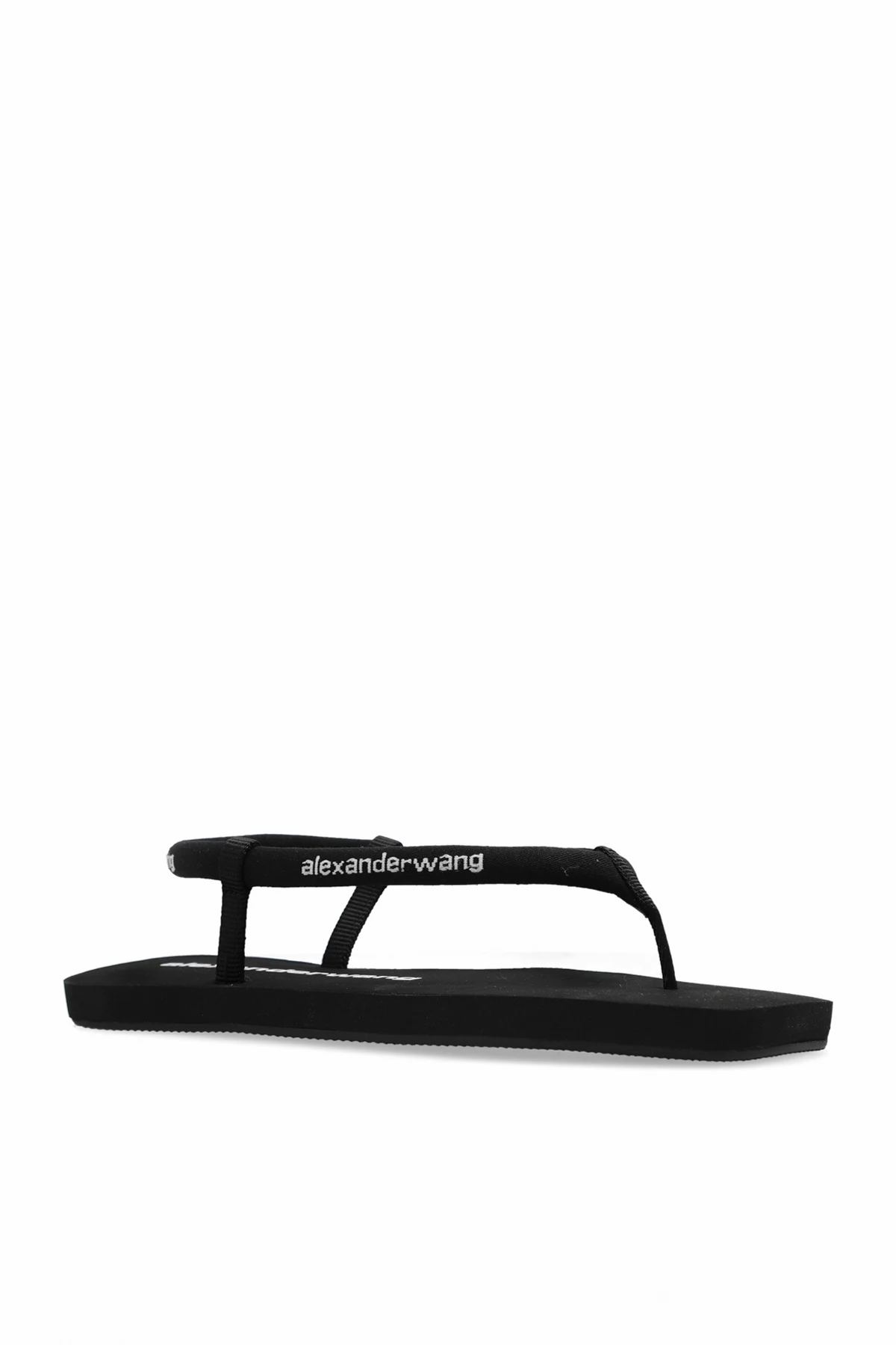 Black sandals from Alexander Wang. Decorated with a white logo, this pair is set on a black sole made from lightweight foam.