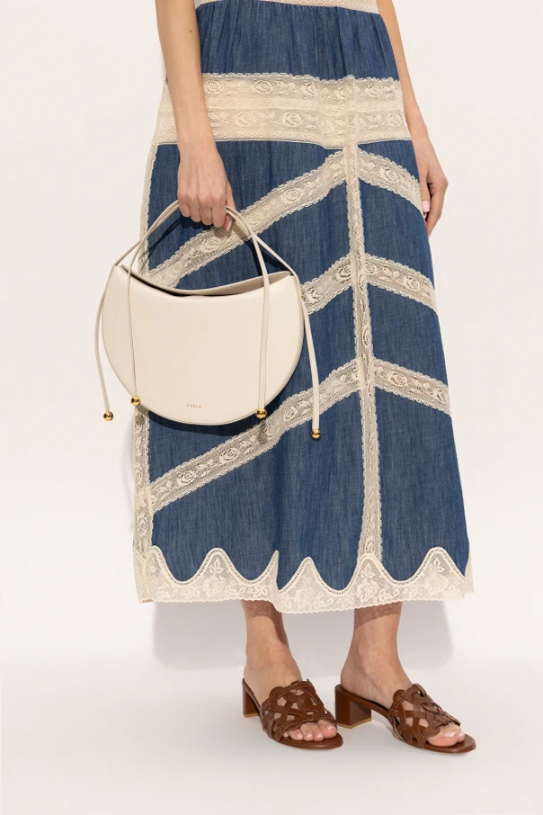 Handtasche Moonstone Medium von Furla begeistert durch ihre präzise Verarbeitung und außergewöhnliche Form. Ihre halbmondförmige, halbrunde Silhouette, inspiriert von der dezenten Linie eines Regals, wird durch exklusives, mattes, cremefarbenes Glattleder besonders betont. Das minimalistische, glatte Design sowie das feine, goldene Furla-Logo auf der Vorderseite verleihen dem Gesamtbild eine edle Zurückhaltung.