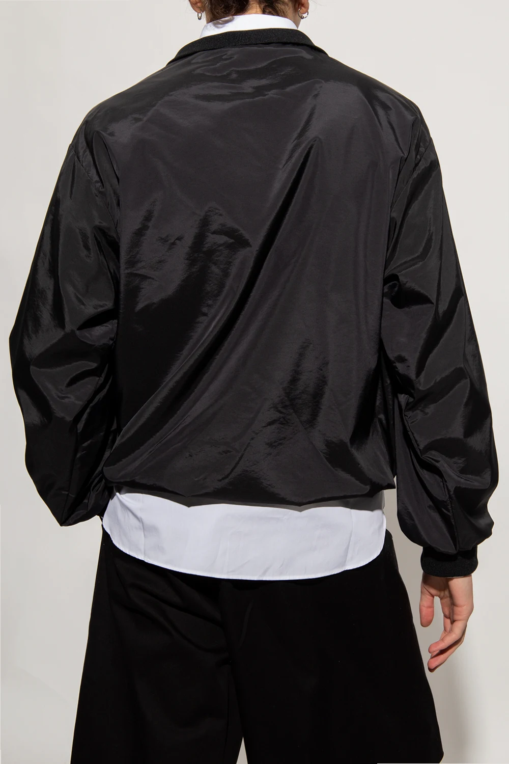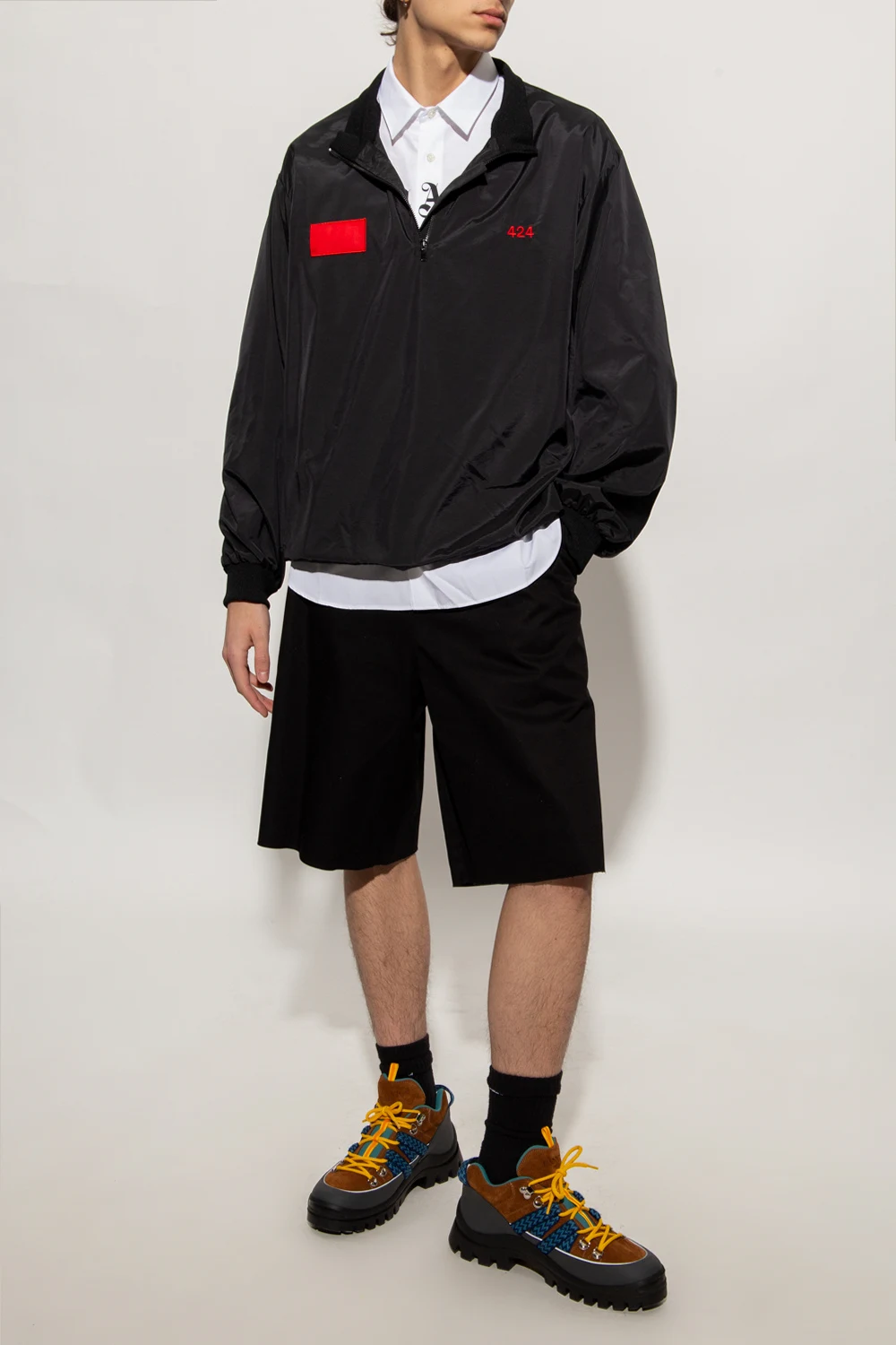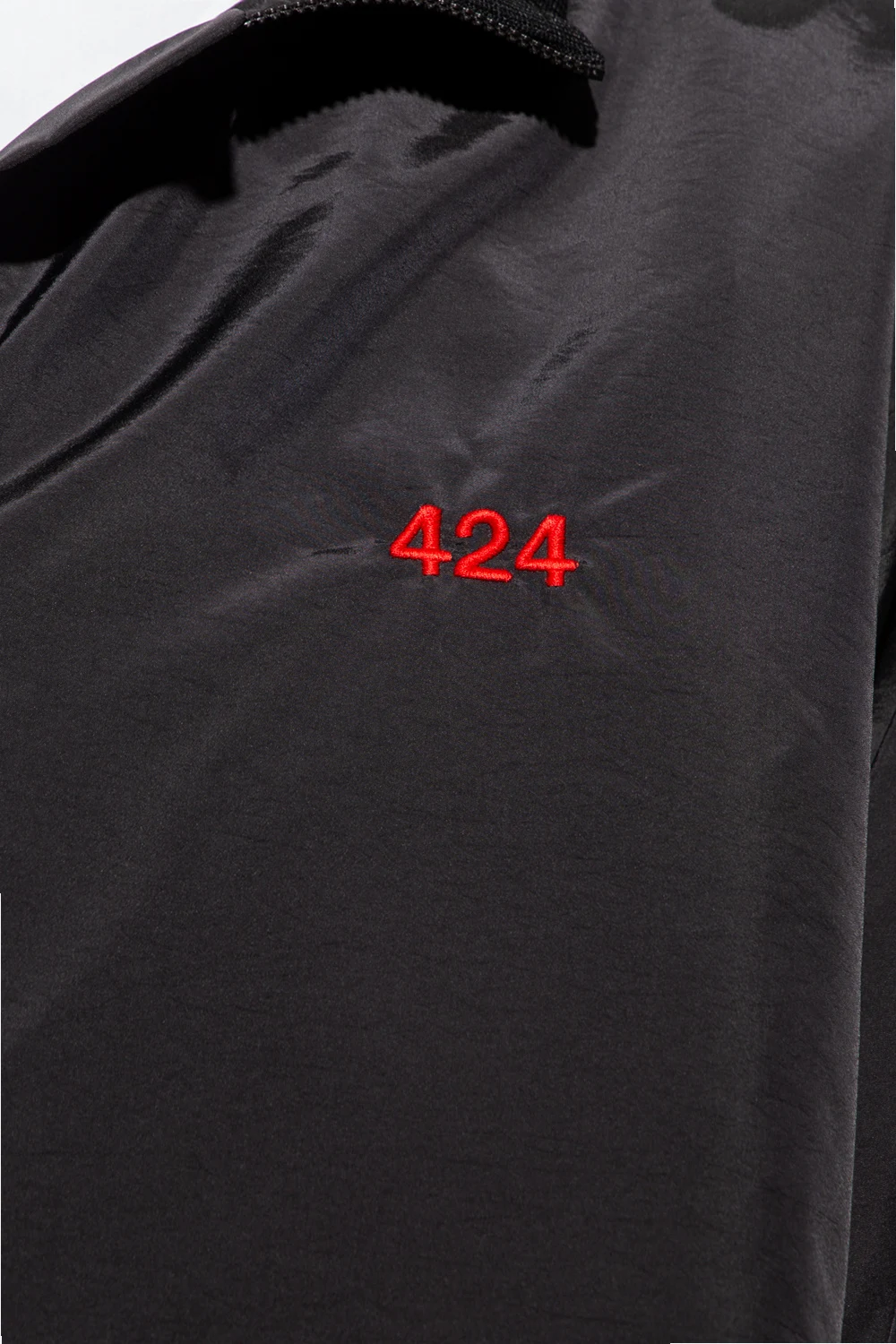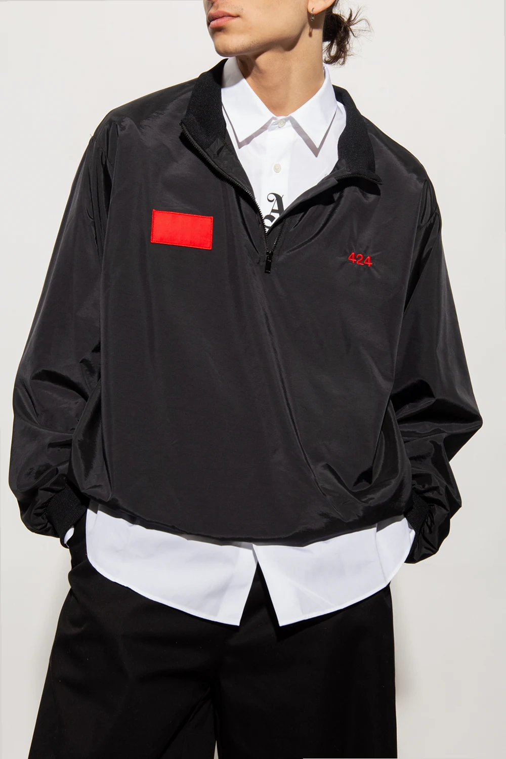 Black track jacket from 424. This garment is complete with a zip closure, stand-up collar, red elements and a drawstring hem.