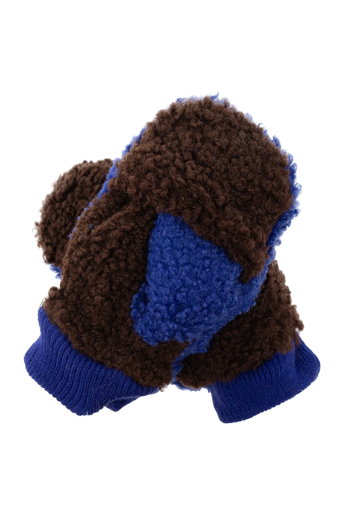 Dark blue and brown gloves from Bobo Choses. Made in fleece, this pair showcases beige logo embroidery and ribbed cuffs.