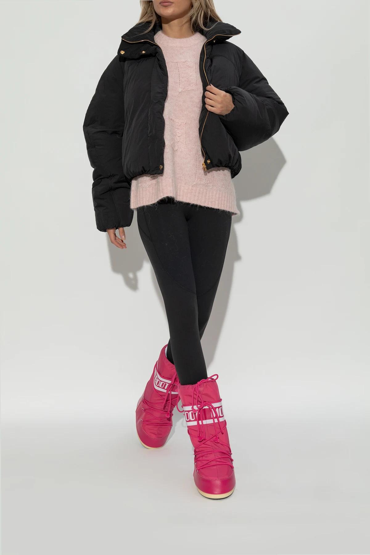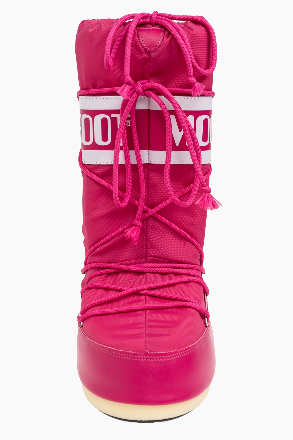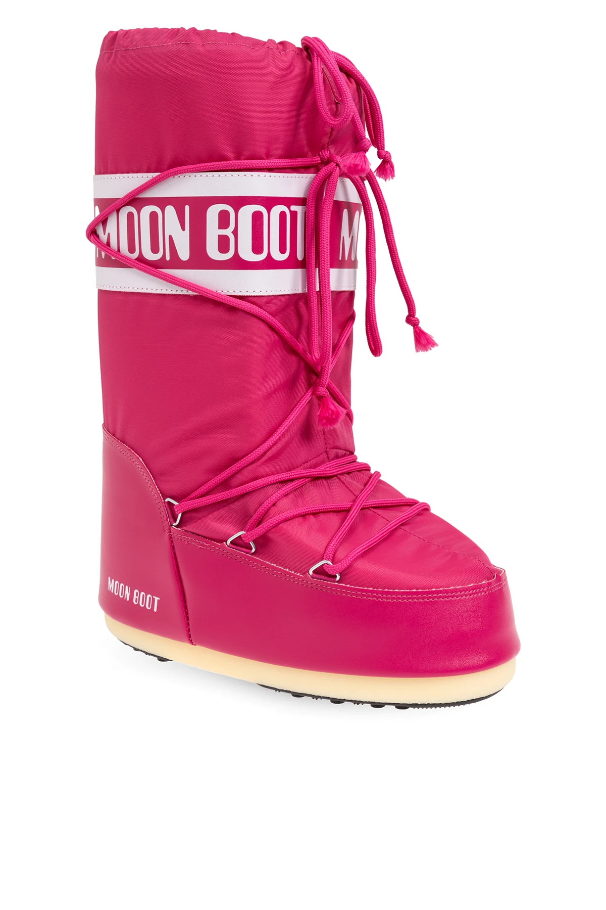 Hergestellt aus strapazierfähigem Nylon, sind die Stiefel witterungsbeständig und ihre Sohle verfügt über rutschfeste Eigenschaften, was sie zur idealen Wahl für Wintertage macht. Die dominierende, intensive pinke Farbe verleiht ihnen ein auffälliges, modisches Aussehen.