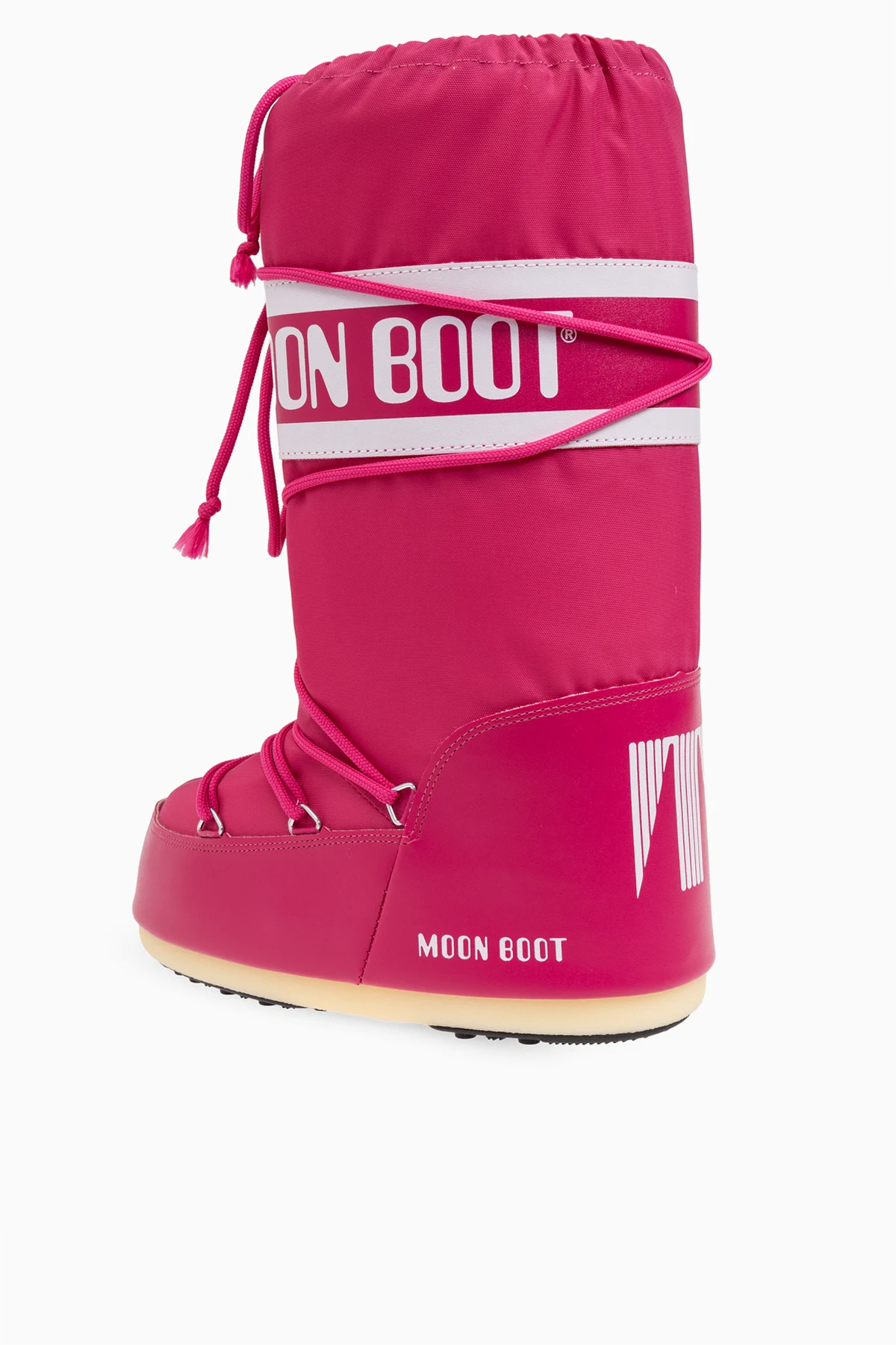Details wie der breite, weiße Logo-Riemen von MOON BOOT , das Schnürsystem für eine bessere Passform und die charakteristischen vertikalen Streifen auf der Rückseite unterstreichen die Einzigartigkeit dieses Modells.