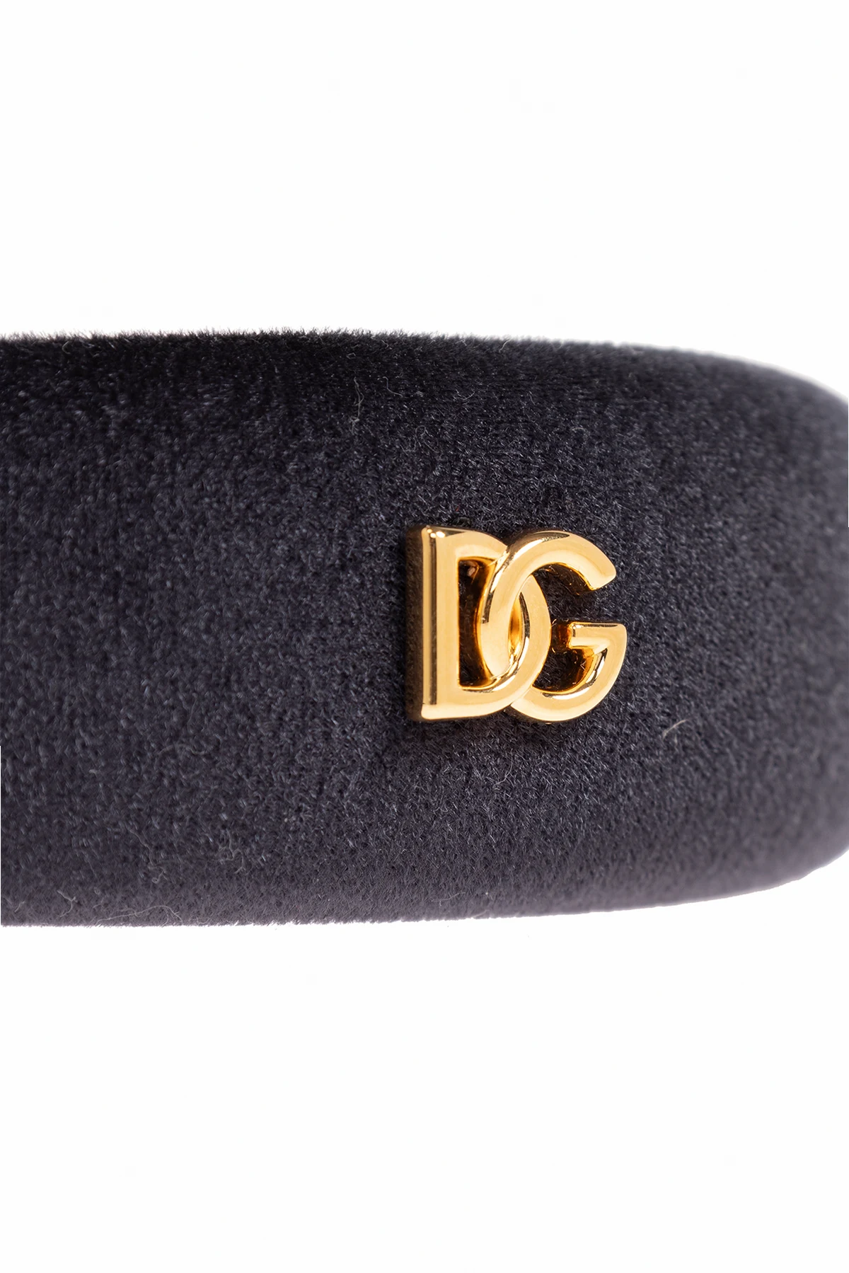 Black headband with a velvet finish and metal logo detail in gold-tone from Dolce & Gabbana Kids.