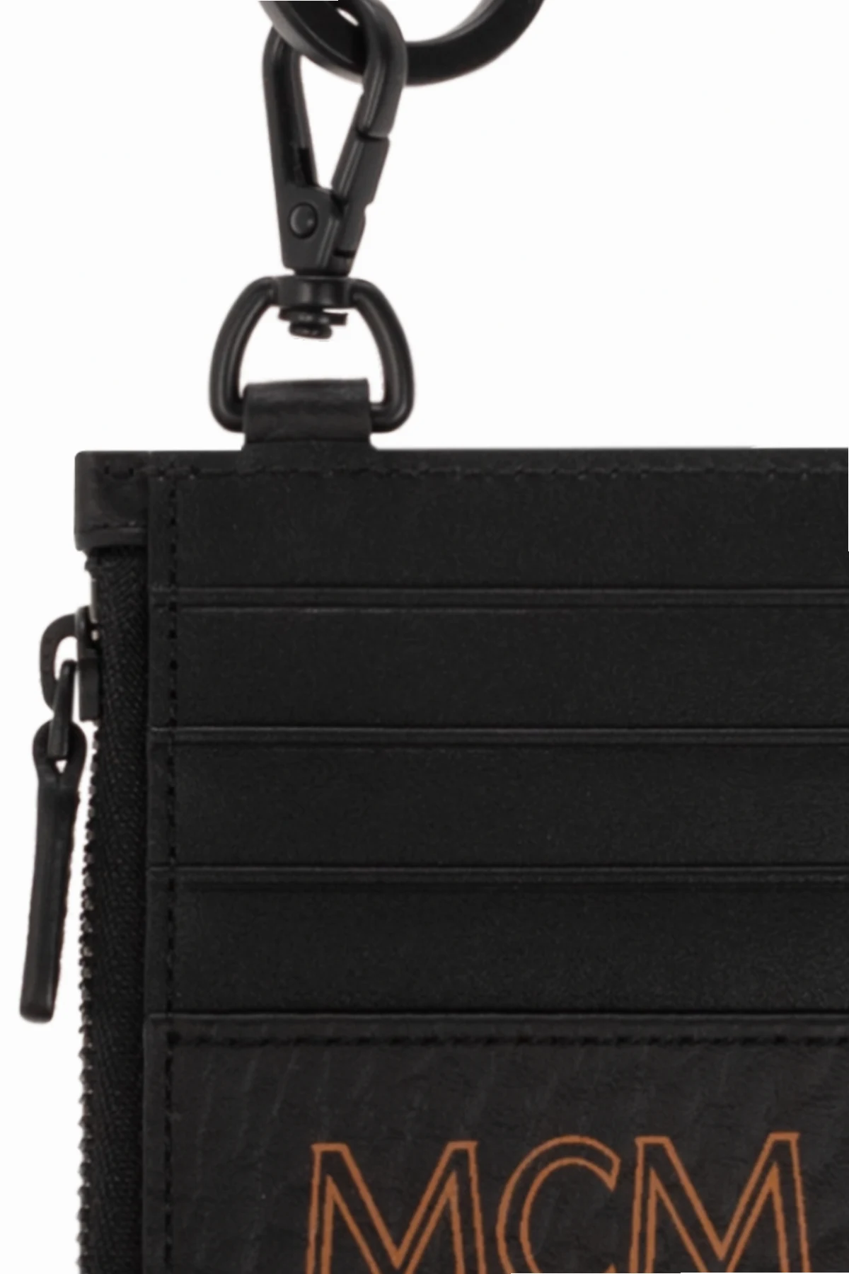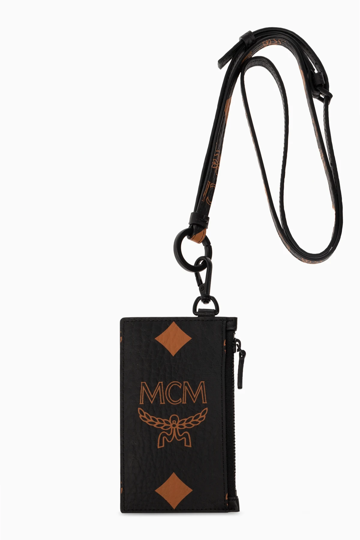 Black card case from MCM. Crafted from coated canvas with a brown Visetos monogram, this item features one zip pocket and four card slots. It comes with a detachable and adjustable strap.