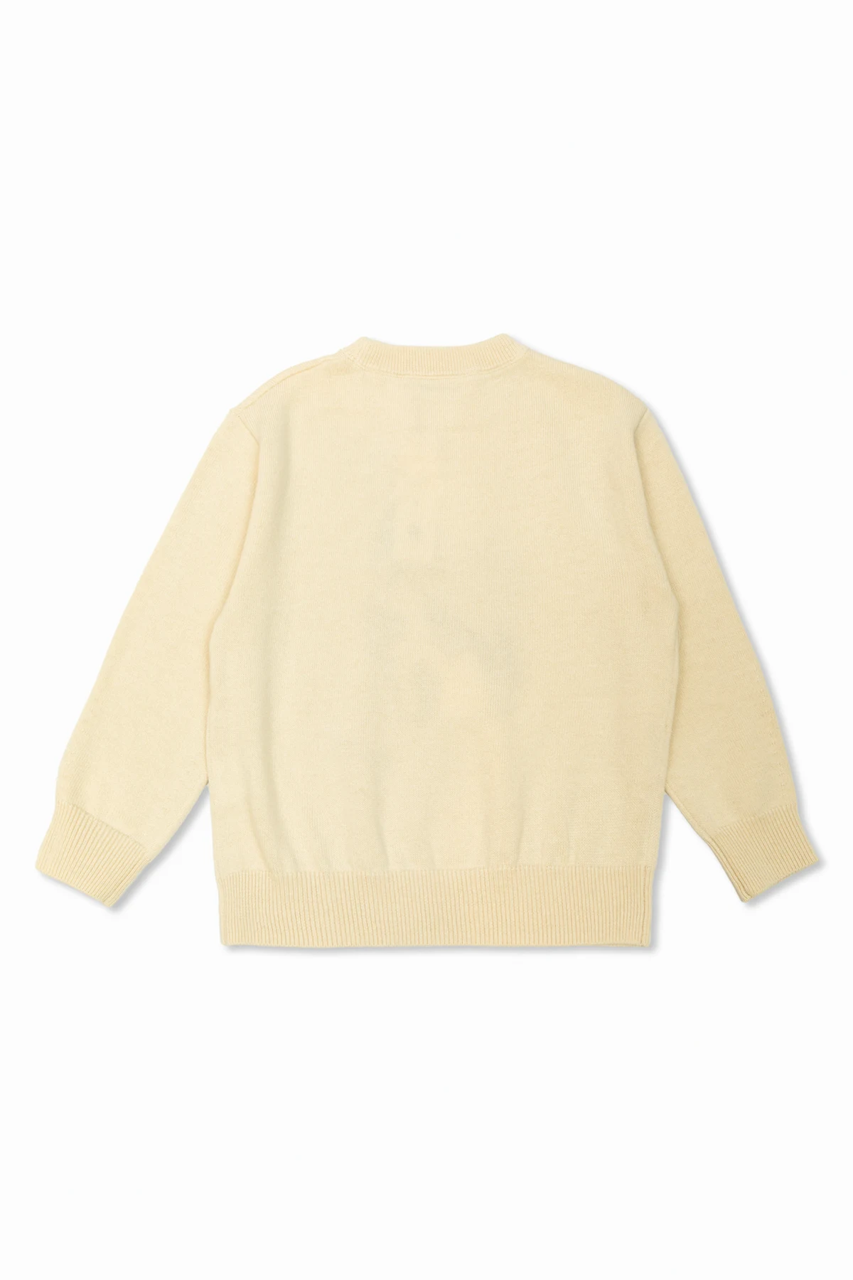 Das Design zeichnet sich durch einen Rundhalsausschnitt und lange Ärmel mit elastischen Bündchen aus, die kindliche Eleganz unterstreichen. Das zarte, doch aussagekräftige Hundemotiv auf der Vorderseite sowie die diskrete Signatur des Designers verleihen diesem Pullover einen exklusiven Charakter. Die glatte Rückseite des Produkts betont das minimalistische Design, während die sorgfältig gefertigten Bündchen von hoher Qualität und Liebe zum Detail zeugen.