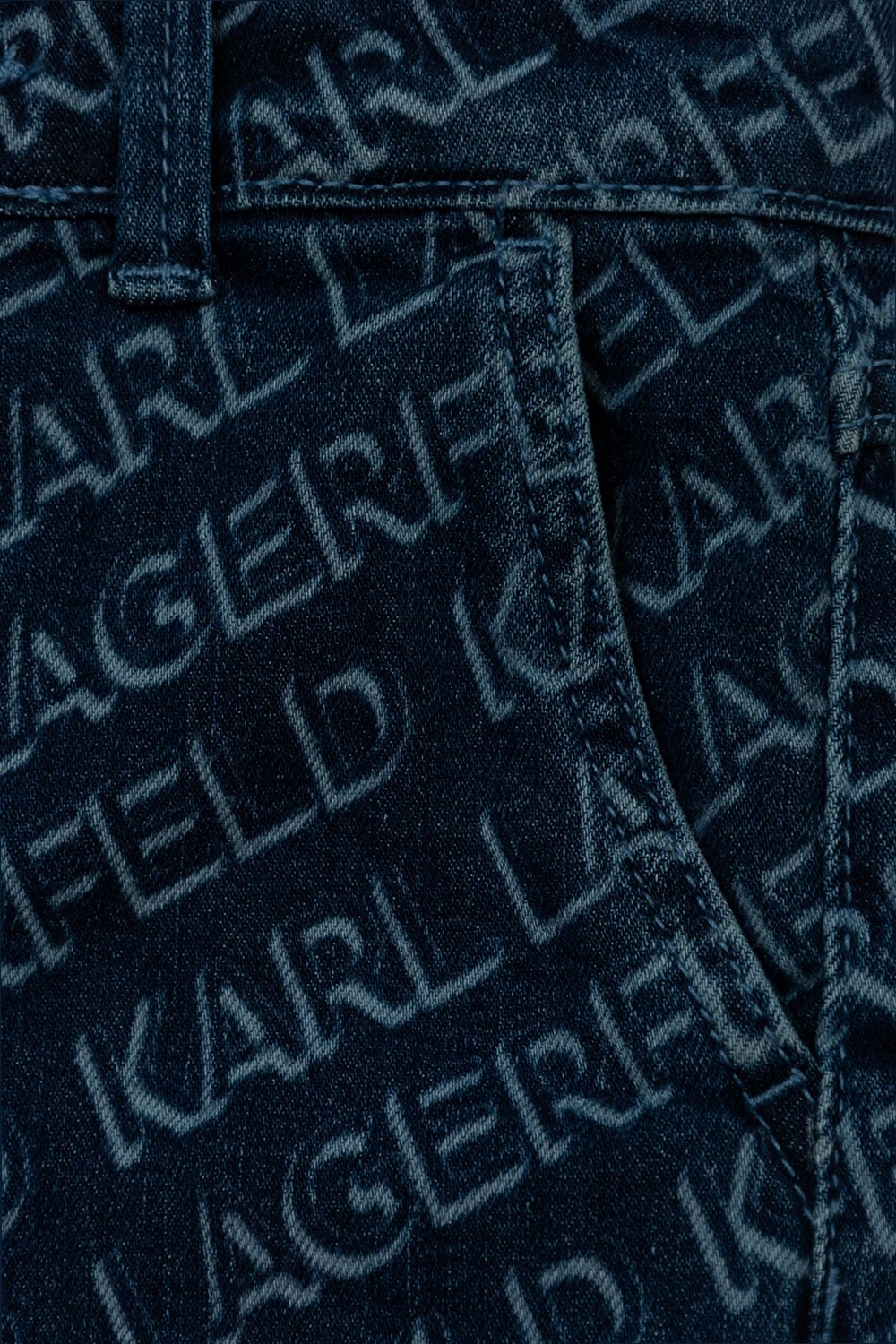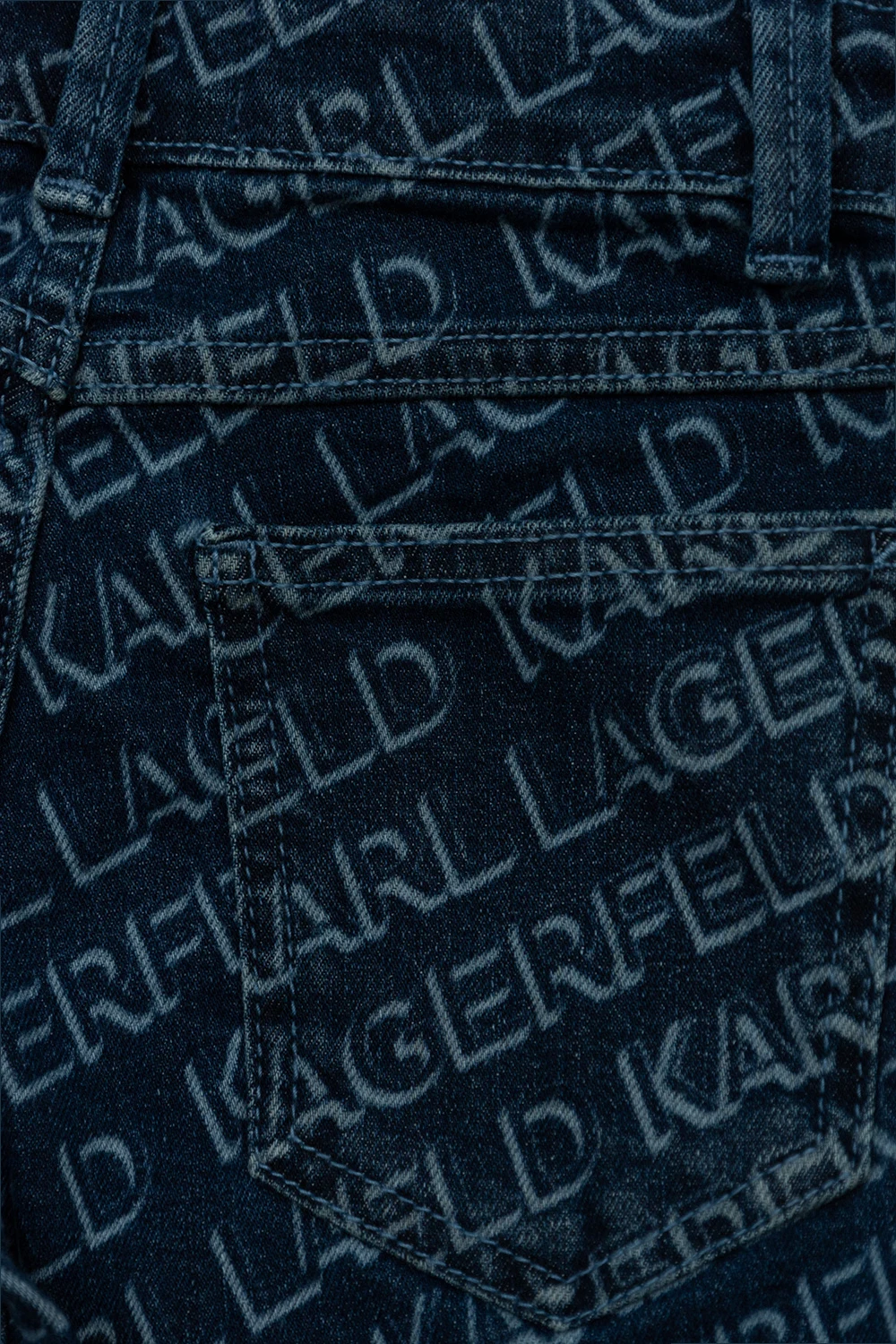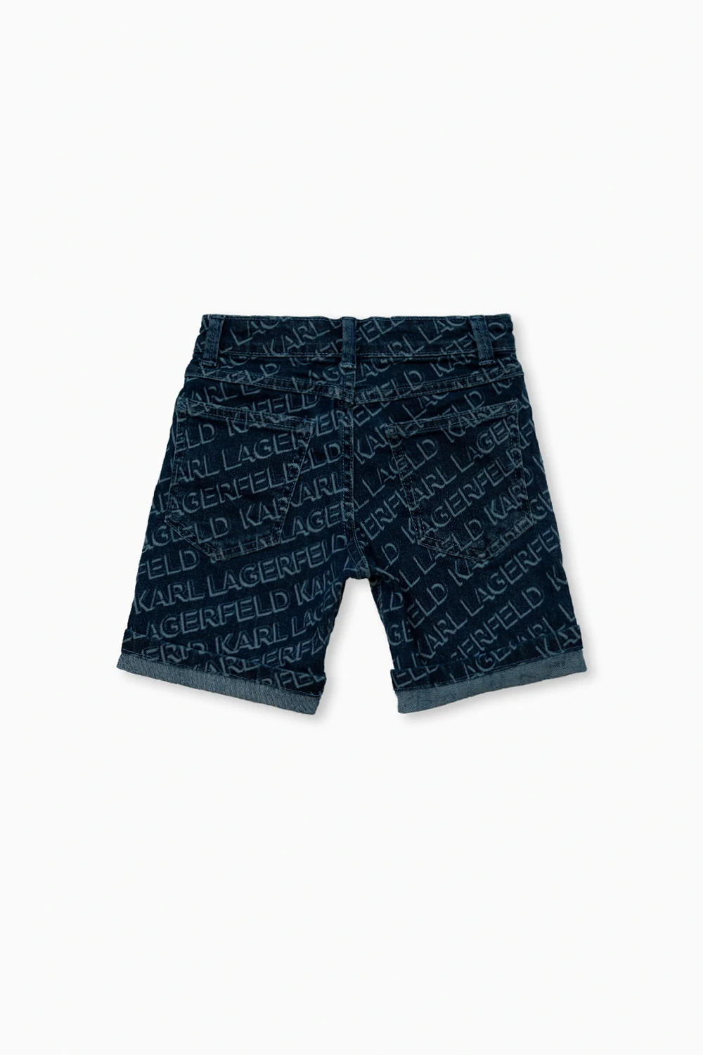 Blue denim shorts from Karl Lagerfeld Kids. Made of cotton, this design features a button and zip closure, logo print, four slip pockets and turn-up cuffs.