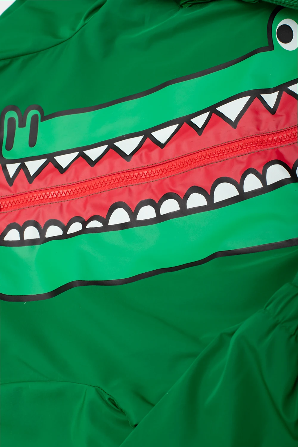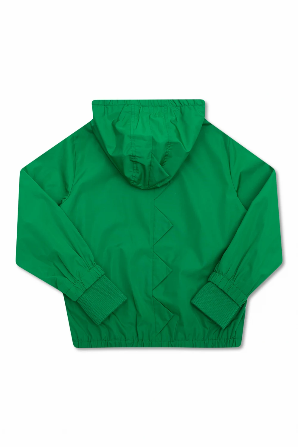 Green track jacket with detachable hood from Stella McCartney Kids. Made of recycled, waterproof polyester, this garment features a zip fastenings, crocodile print, two front zip pockets, mesh lining and long sleeves with ribbed cuffs.