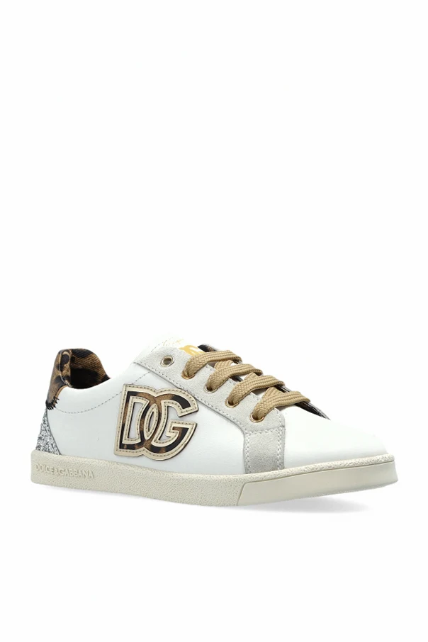 Das Obermaterial besteht aus glattem Leder und edlen Materialien, die einen hohen Tragekomfort gewährleisten. Das große, eindrucksvolle „DG“-Logo an der Seite zieht alle Blicke auf sich und unterstreicht die Einzigartigkeit des Designs. Beigefarbene und goldene Akzente rund um die Schnürsenkelösen harmonieren wunderbar mit den beigen Schnürsenkeln, während die metallisch-grauen Abschlüsse der Paneele und die silberfarbene Fersenkappe dem Ganzen einen markanten Charakter verleihen. Die rutschfeste Gummisohle garantiert bei jedem Schritt Stabilität.