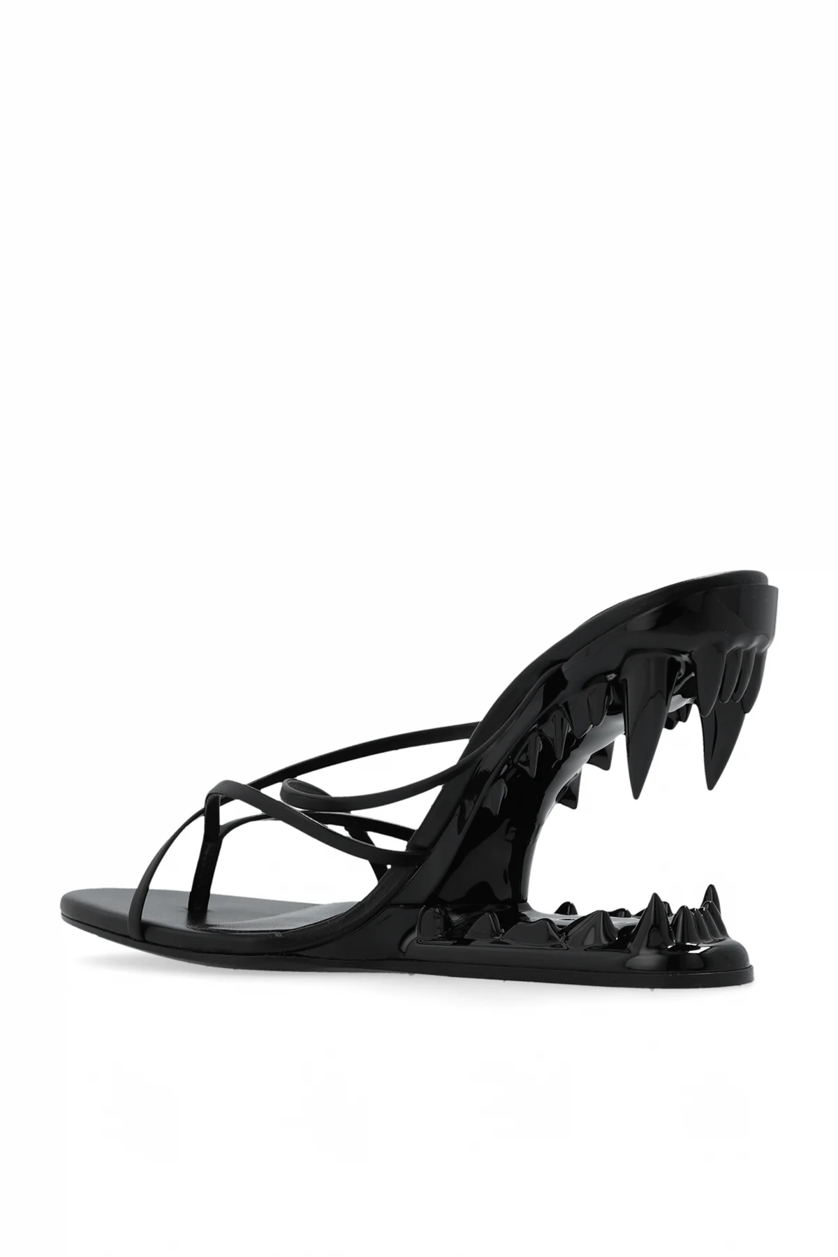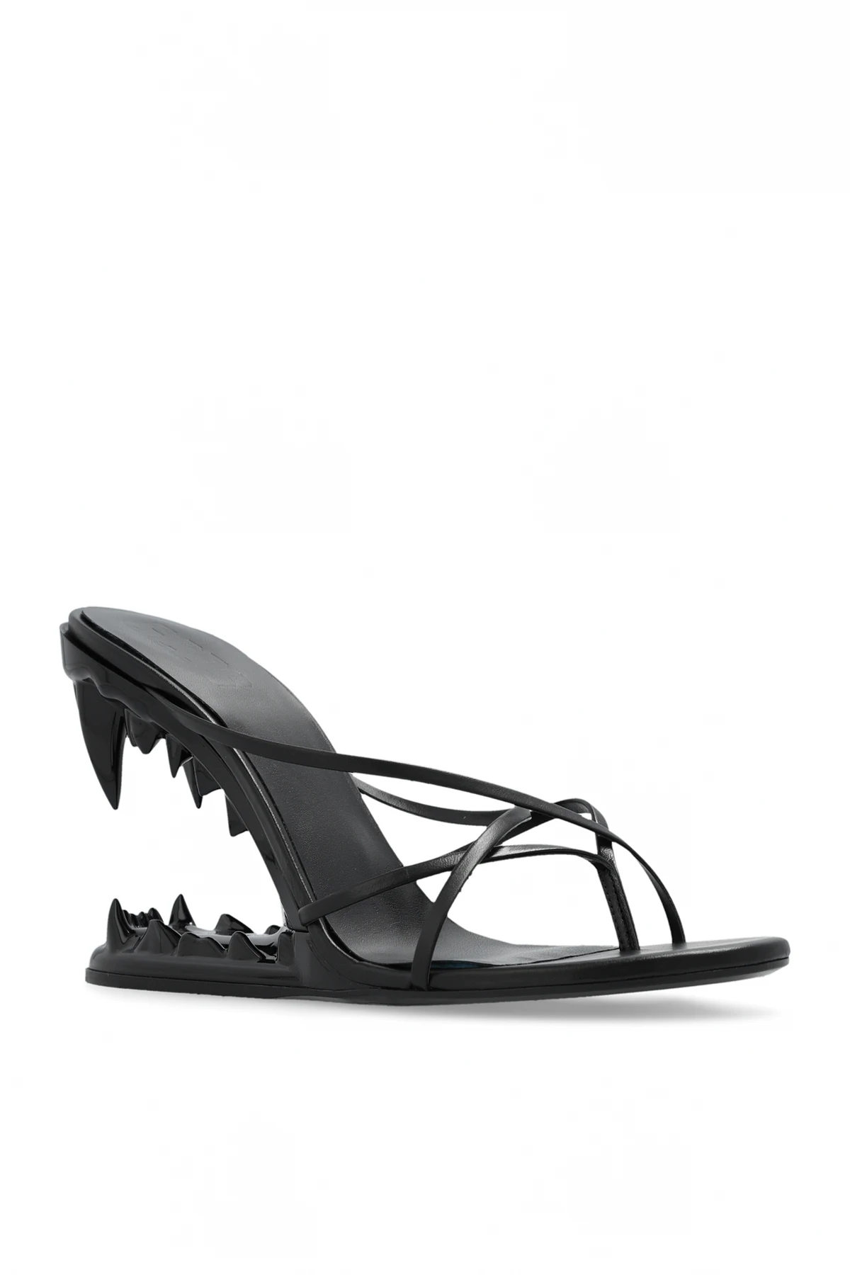 Black wedge mules from GCDS. Made of leather, this pair features a wedge with a decorative finish and a black leather sole.