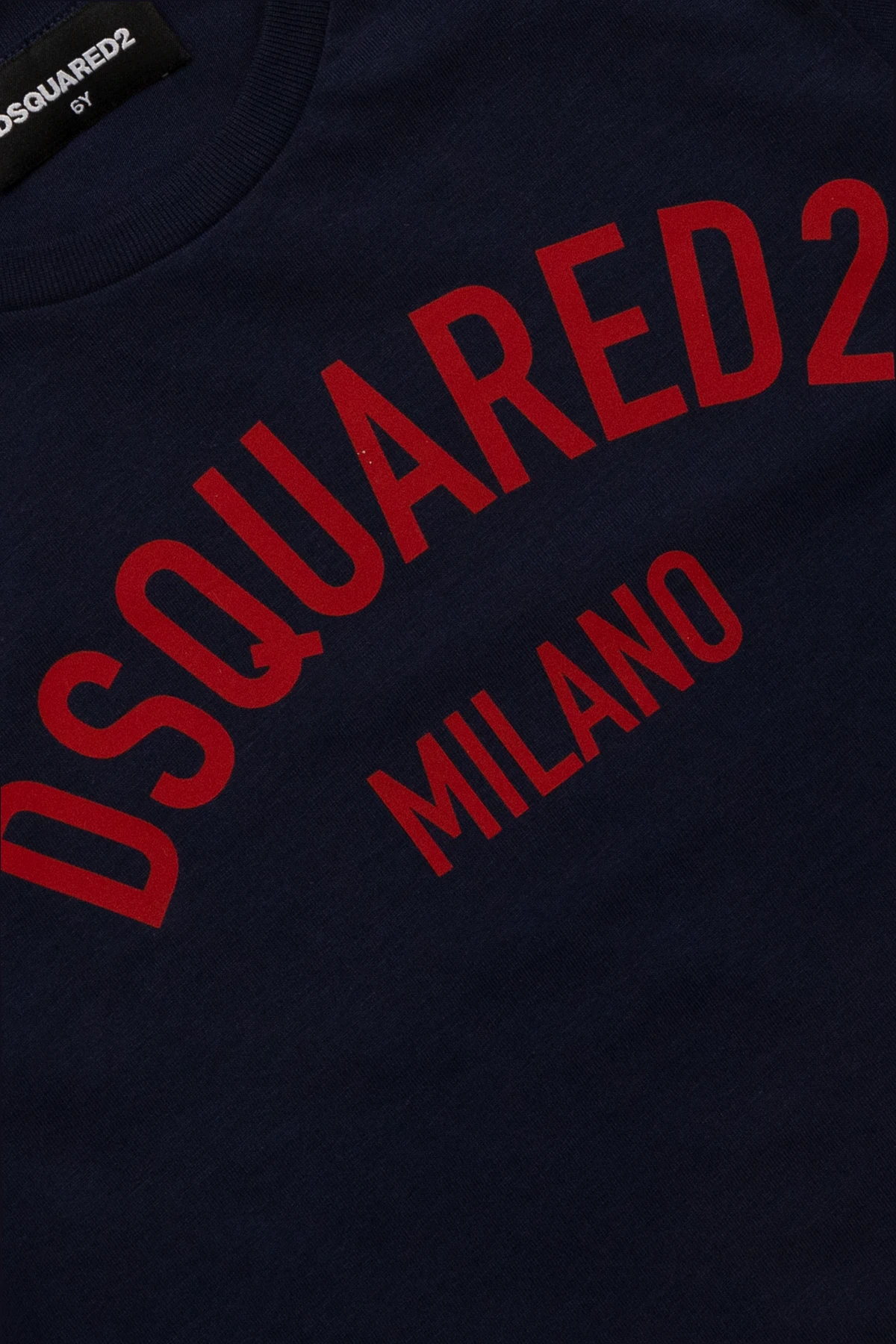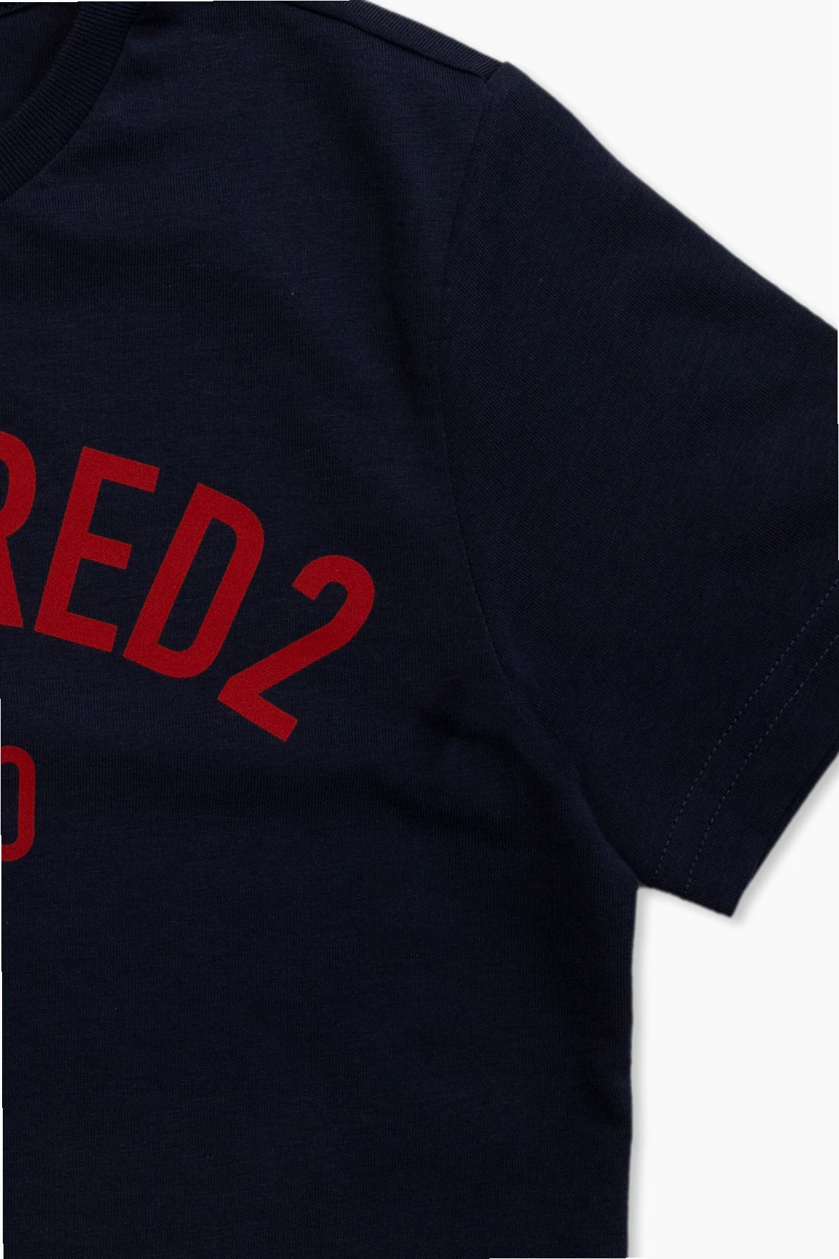 Navy blue crewneck T-shirt from Dsquared2 Kids. Made of cotton, this item features a printed red logo, short sleeves and ribbing on the collar.