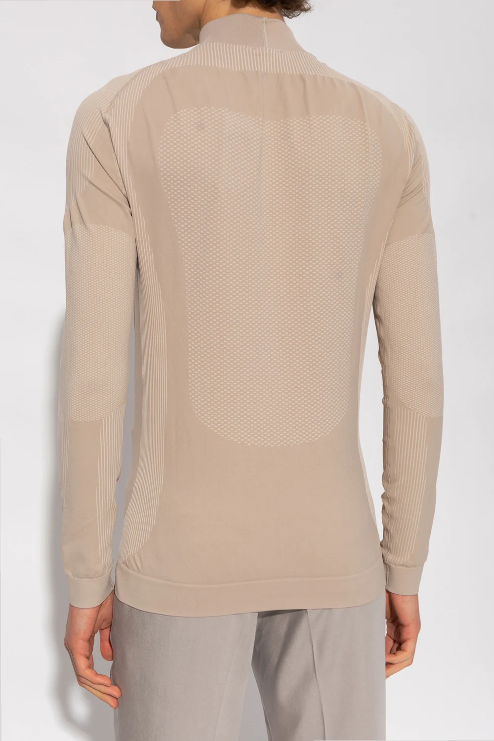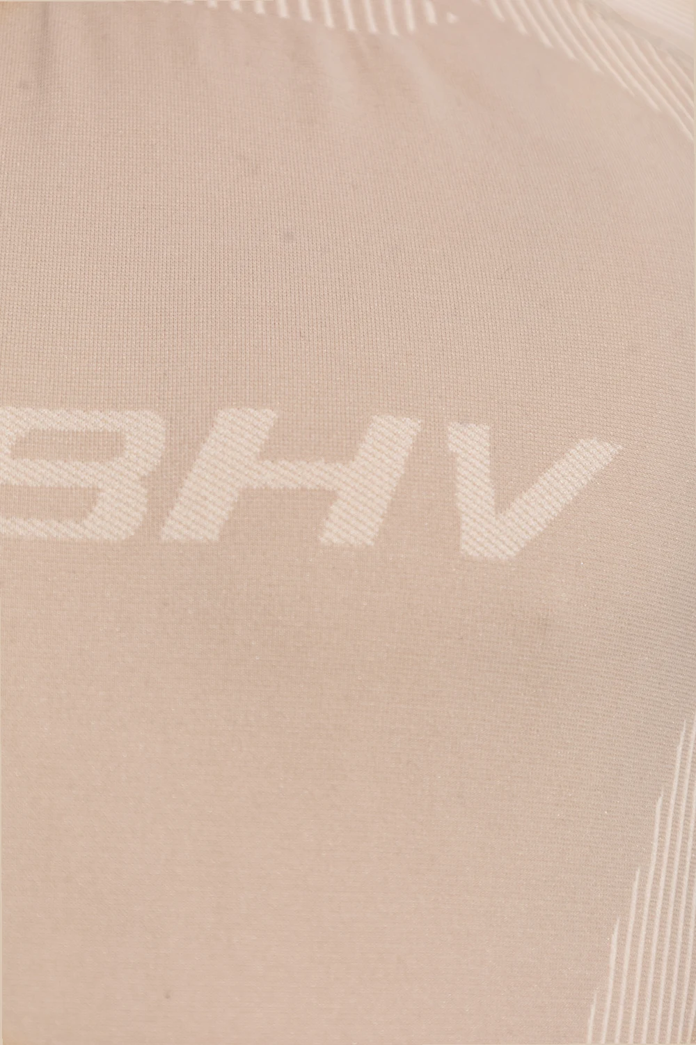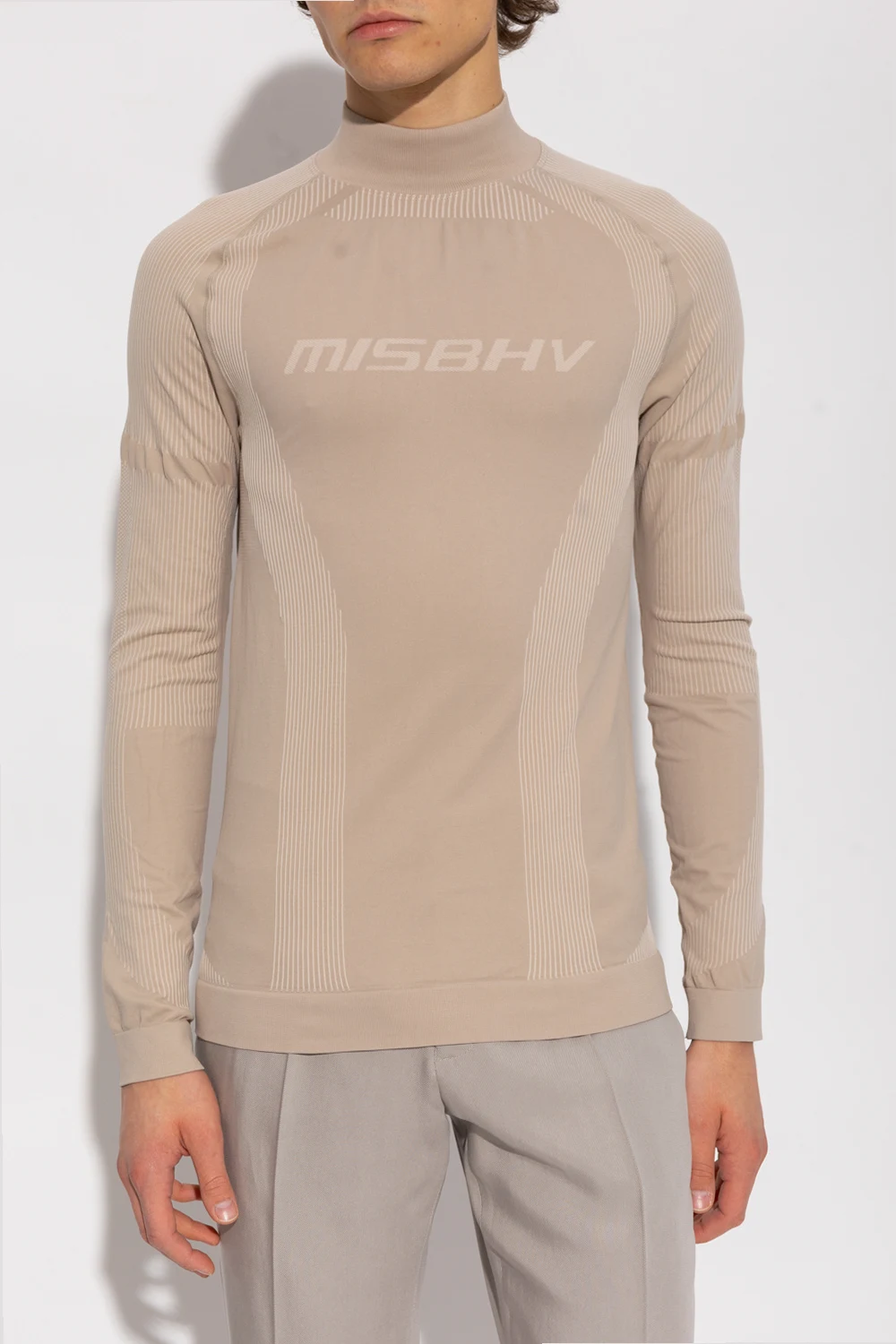 Beige ‘Sport’ training top from MISBHV. Made partially from recycled materials, this long sleeve design is enriched by a logo pattern and ribbed trims at the hem and cuffs.