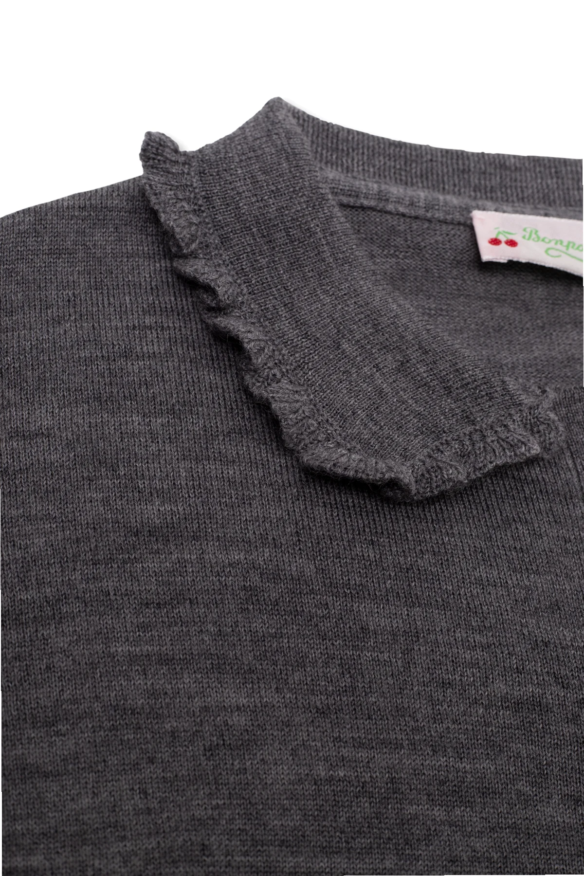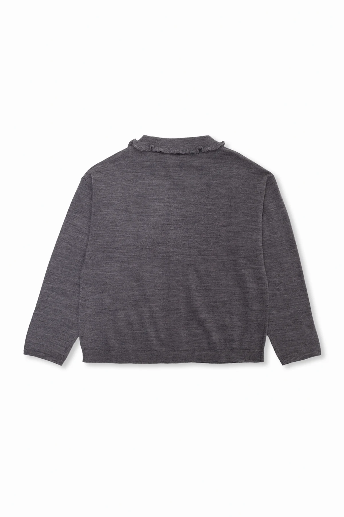 Grey ‘Diana’ cardigan from Bonpoint. Made of wool, this style fastens with buttons and features a round neckline with a decorative collar, long sleeves and elasticized trims on the bottom hem and cuffs.