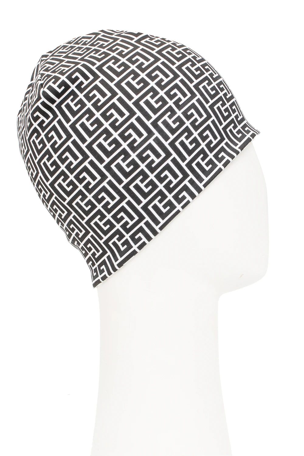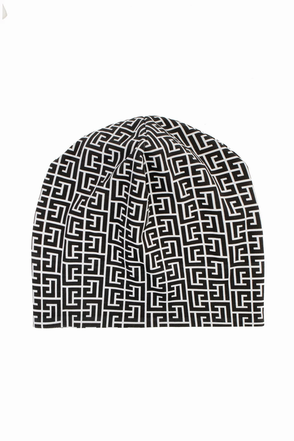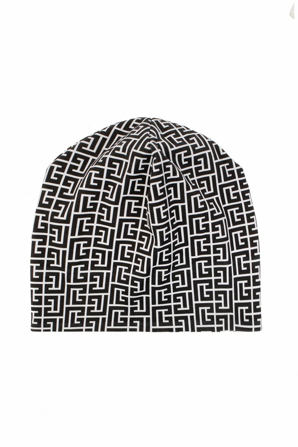White and black beanies two-pack from Balmain Kids. Made of cotton. One has a black logo print, the other one flaunts a monogram pattern.