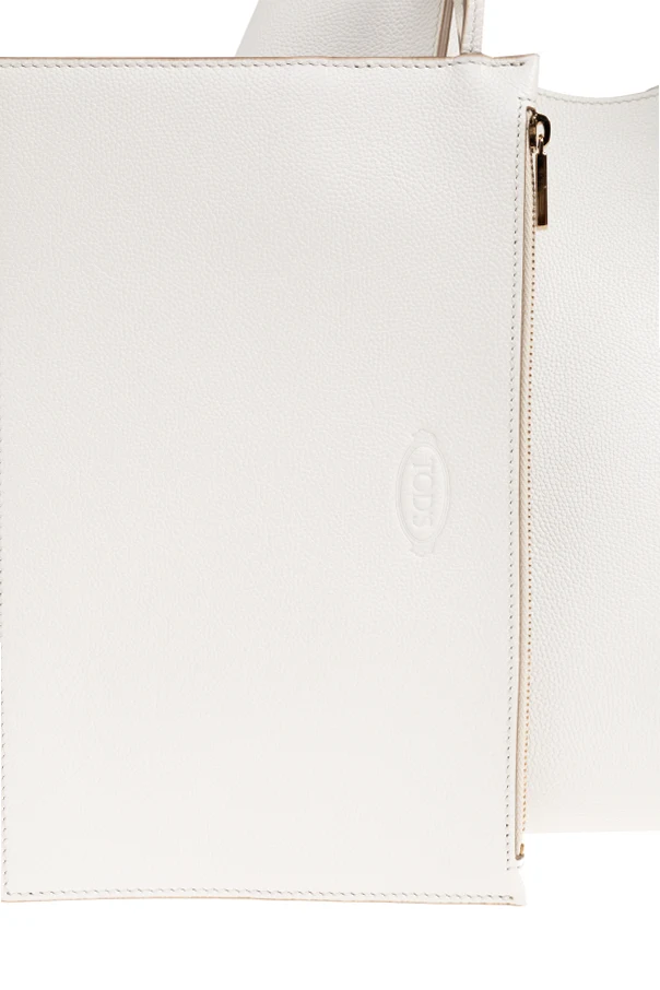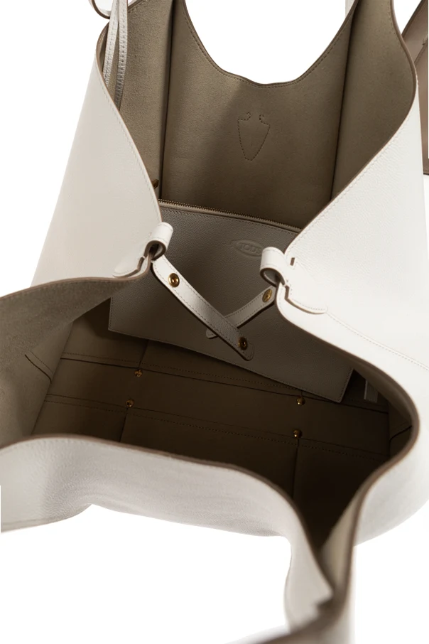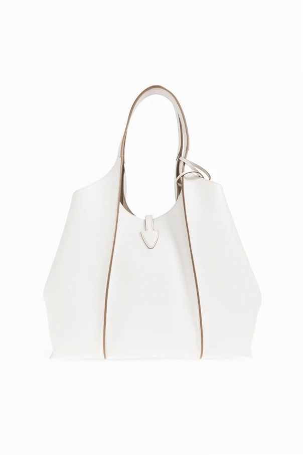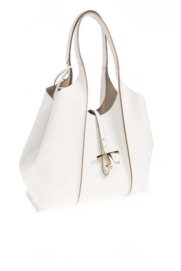 Schultertasche T Timeless Medium von Tod’s ist eine raffinierte Wahl für Liebhaber zeitloser Eleganz. Ihr weiß er, reiner Farbton harmoniert perfekt mit der dezenten, hellbeigen Paspelierung und verleiht dem gesamten Design eine exquisite, zugleich universelle Ausstrahlung. Die leicht trapezförmige Shopper-Silhouette mit weichen Seiten betont luxuriösen Minimalismus und außergewöhnliche Funktionalität.
