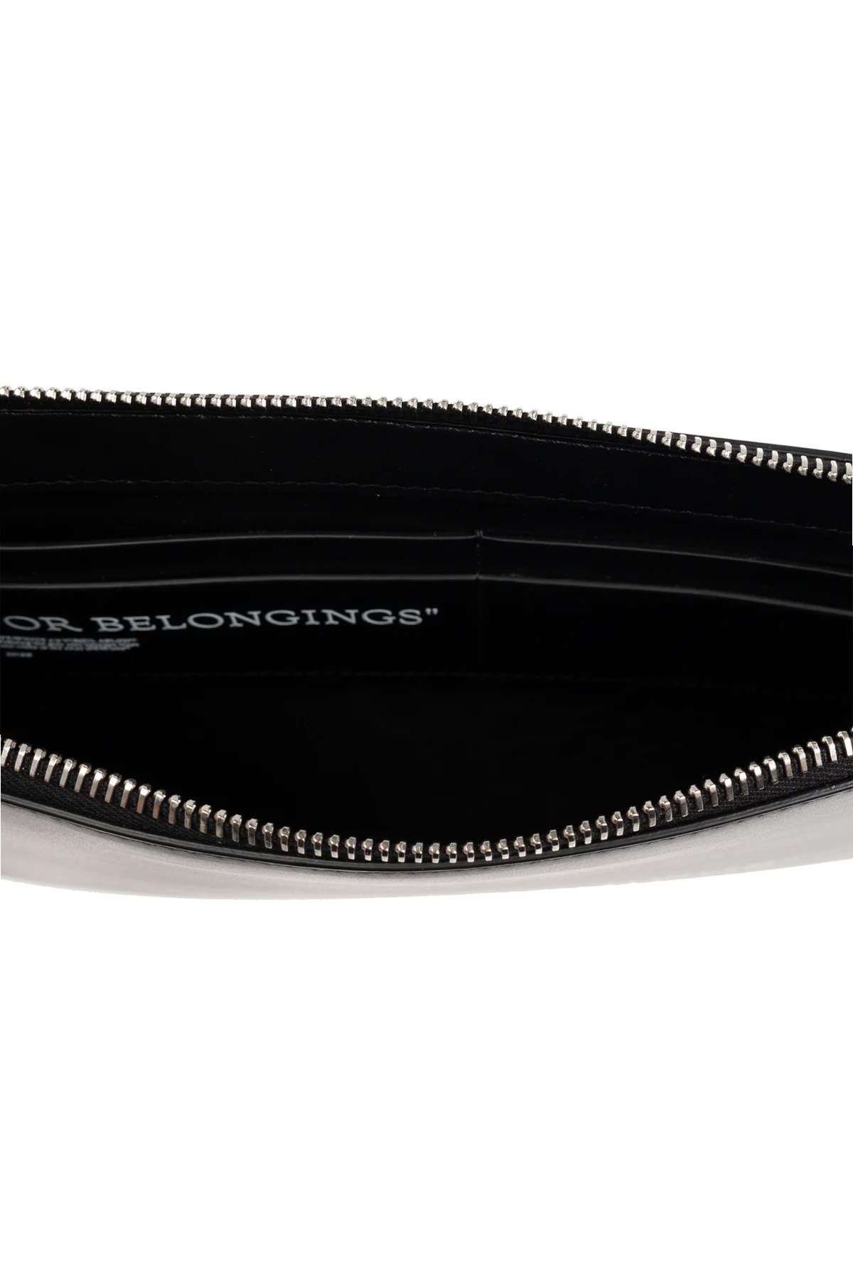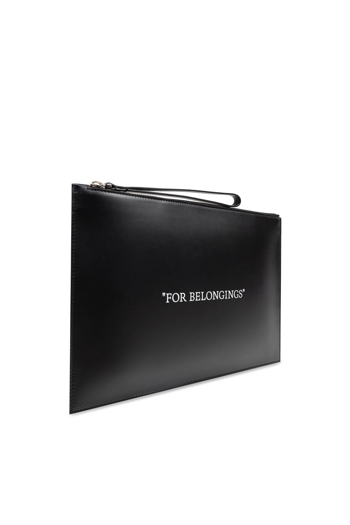 Die schwarze Tasche zeichnet sich durch ihre Eleganz und Vielseitigkeit aus und passt perfekt zu verschiedenen Outfits. Auf der Vorderseite der Tasche befindet sich der charakteristische weiße Schriftzug "FOR BELONGINGS", der ihr einen einzigartigen Charakter verleiht.