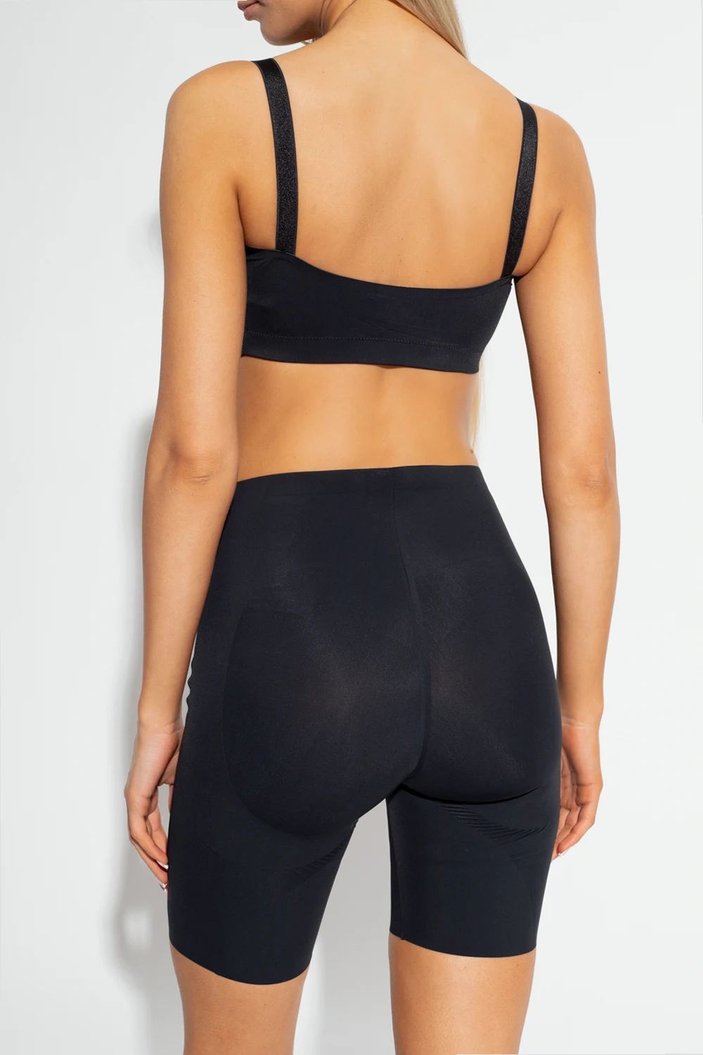 Short, black leggings with a red and white velvet finish print from Dsquared2.