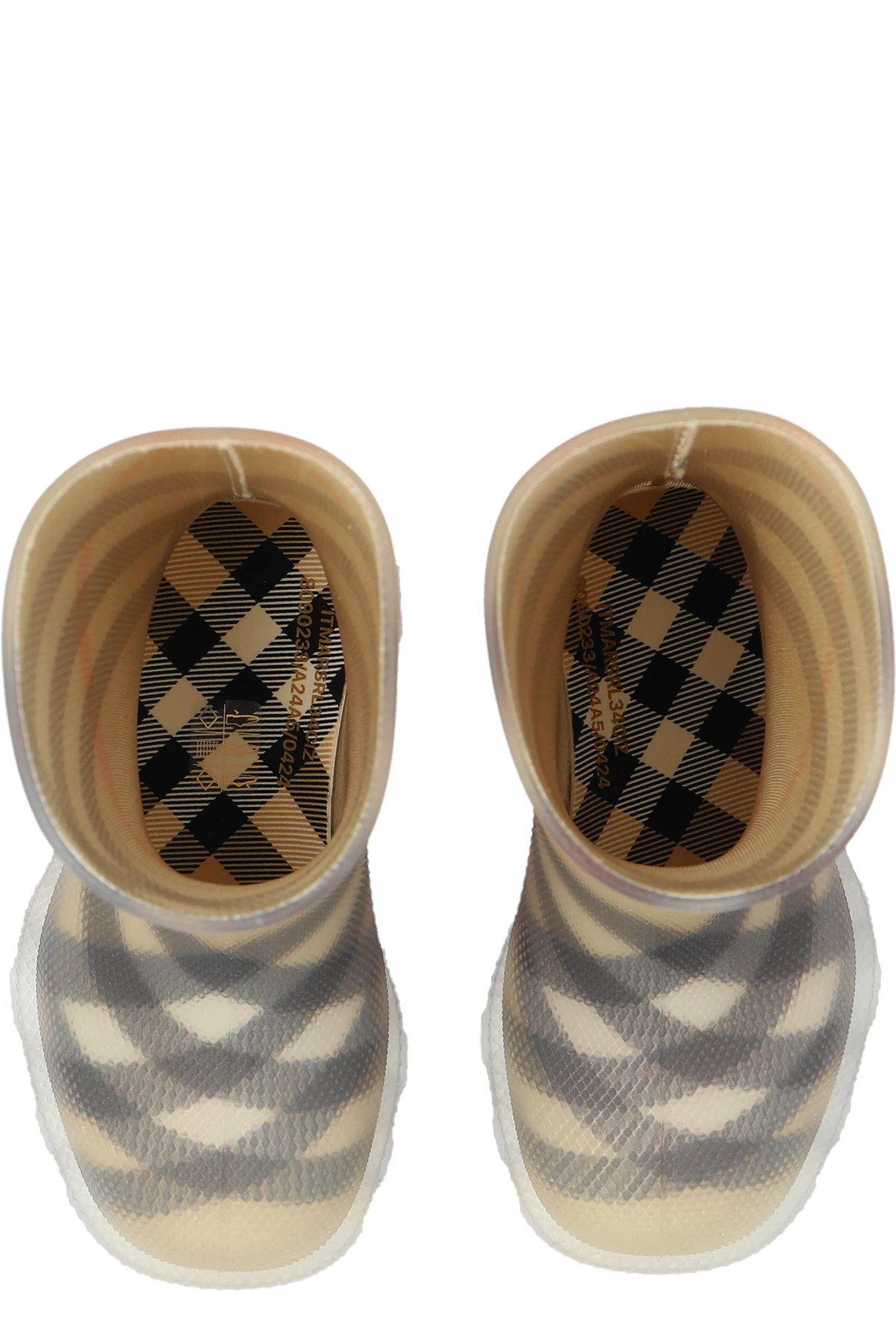Das Innere der Gummistiefel ist ebenfalls mit einem Karomuster versehen, was die Eleganz und Liebe zum Detail unterstreicht. Diese Gummistiefel sind die perfekte Kombination aus Funktionalität und modischem Aussehen, was sie nicht nur praktisch, sondern auch stilvoll macht.