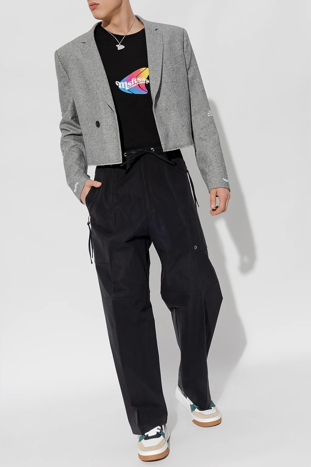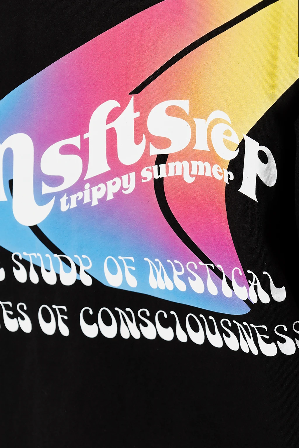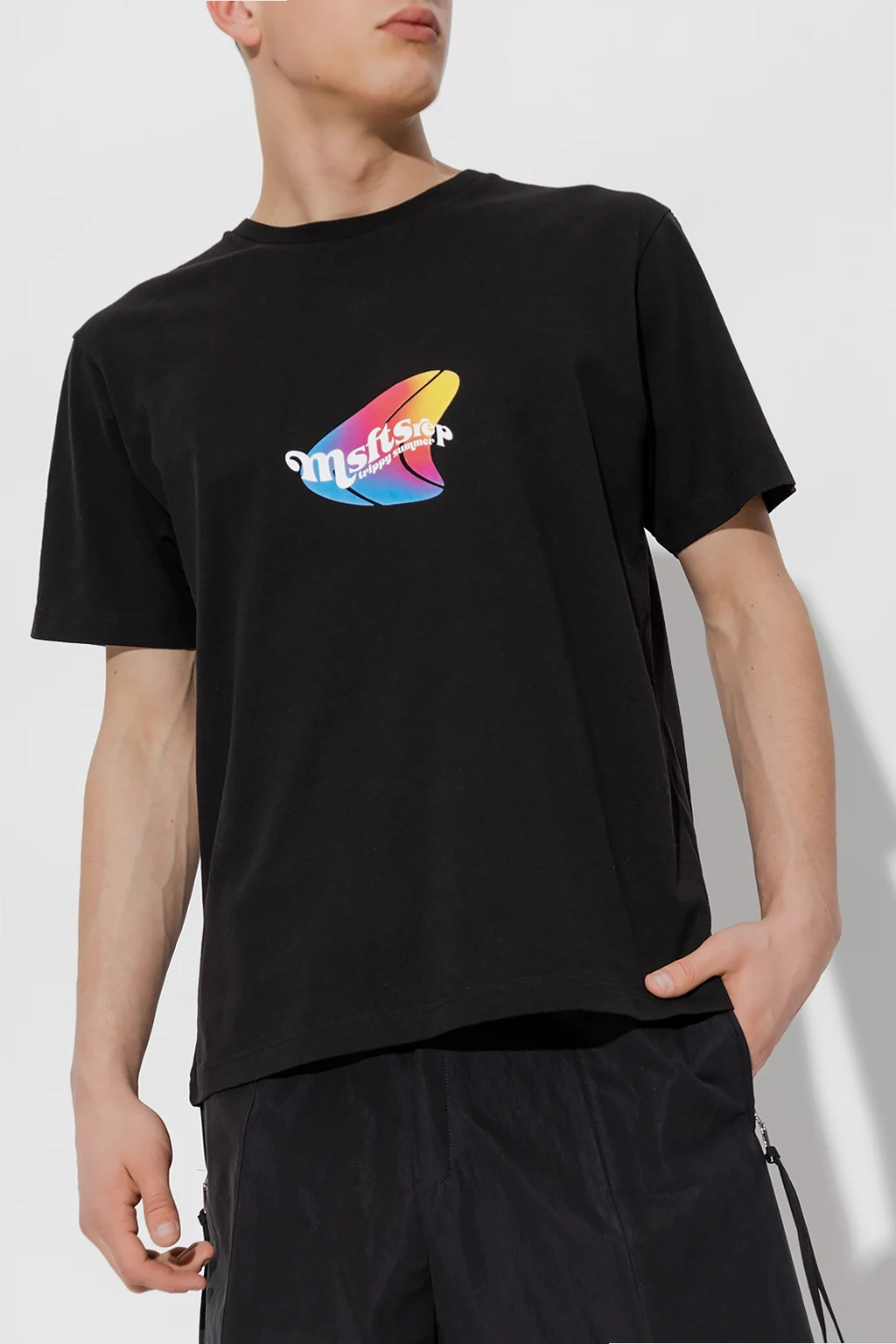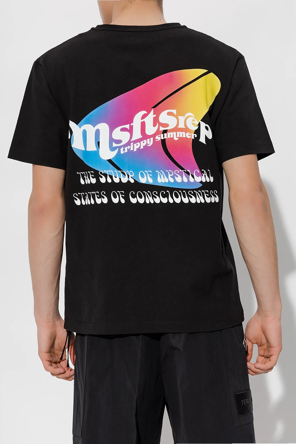 Black crewneck T-shirt from MSFTSrep. Crafted from cotton, this style features a ribbed collar, short sleeves and a colourful graphic print with the brand's logo on the front and back.