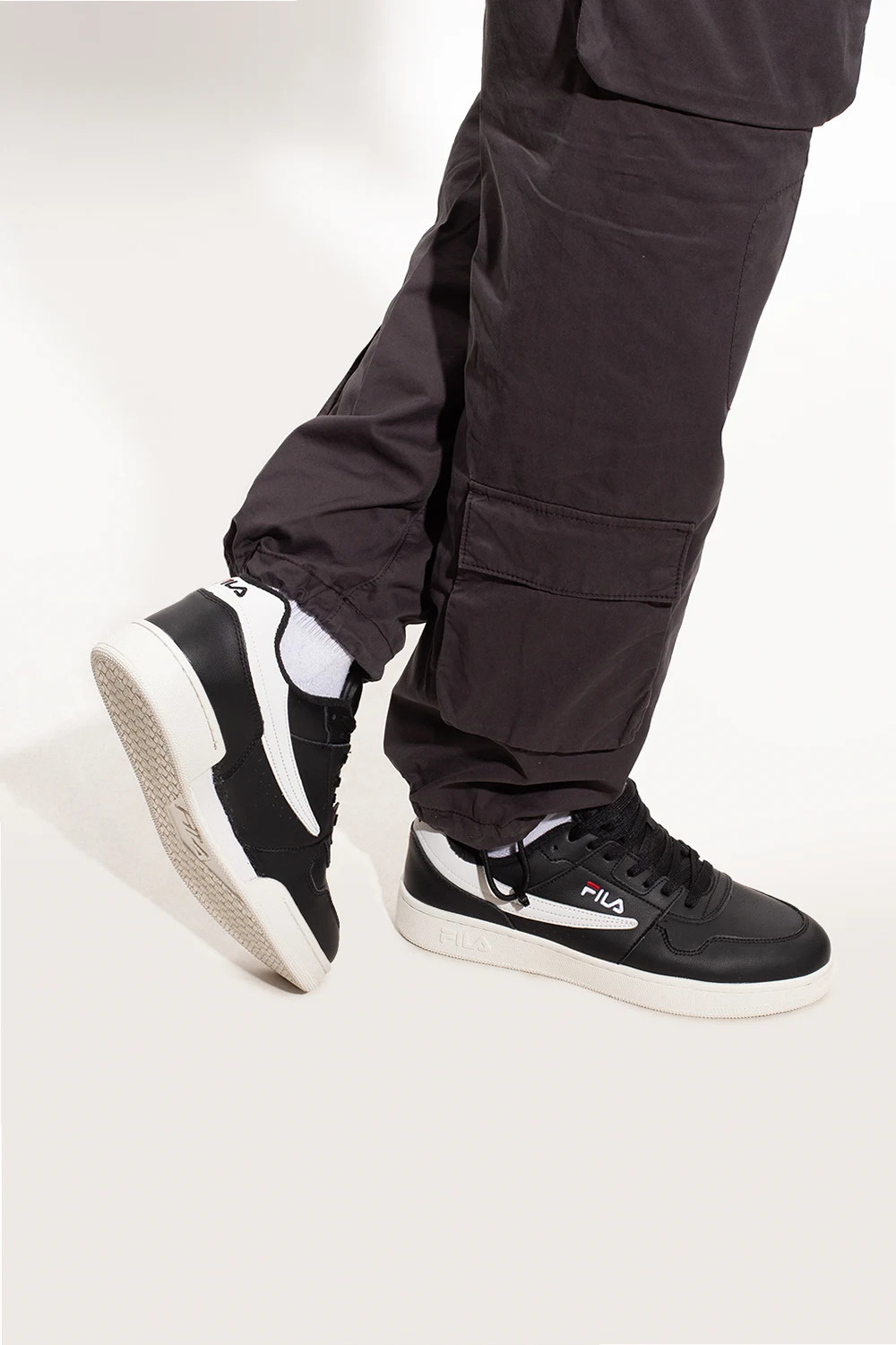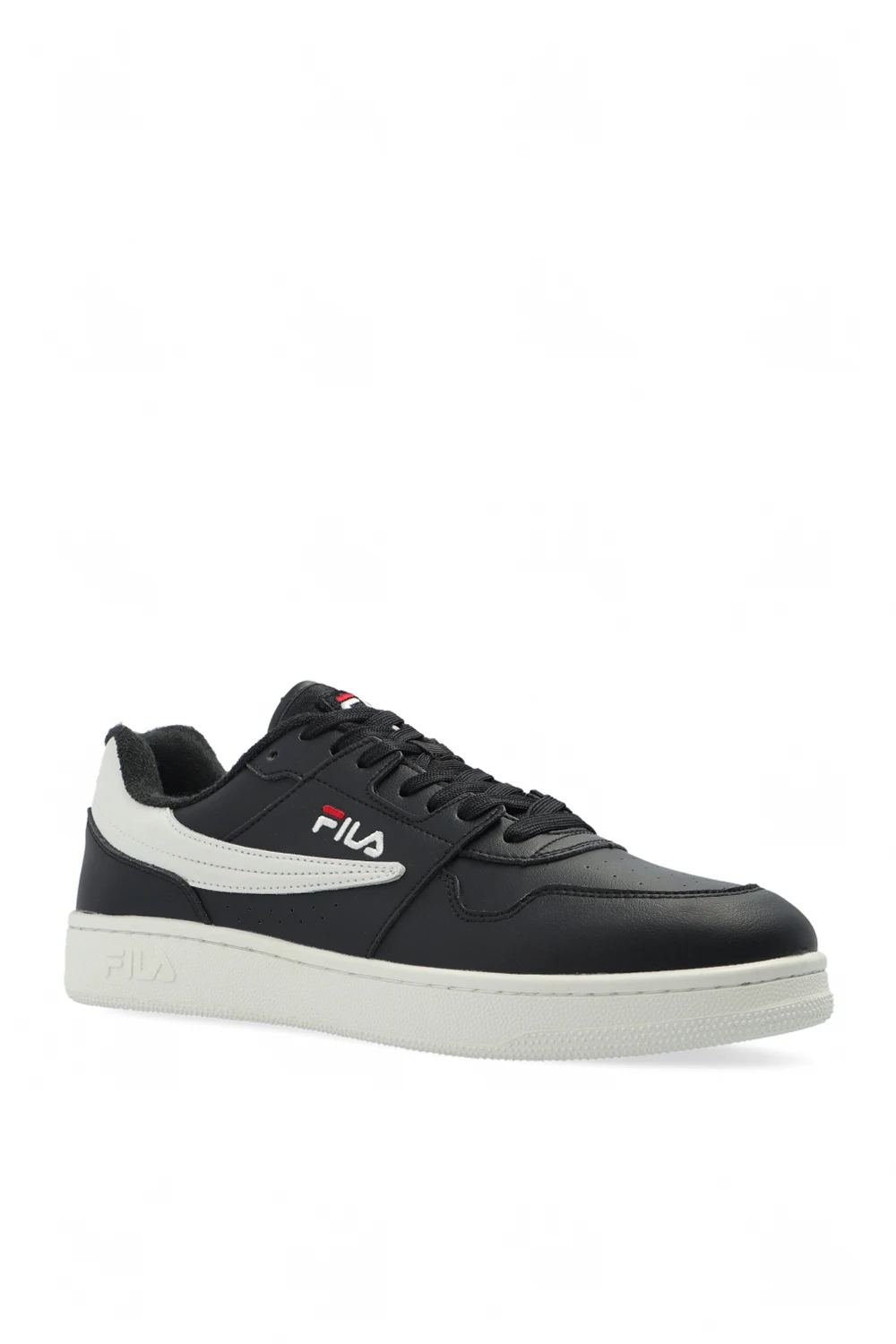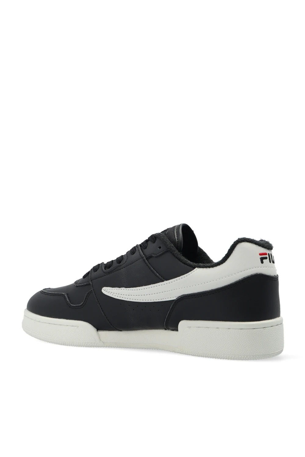 Black and white ‘Arcade’ sneakers from Fila. Made of leather, this lace-up pair features perforations, logo embroidery and white rubber sole.