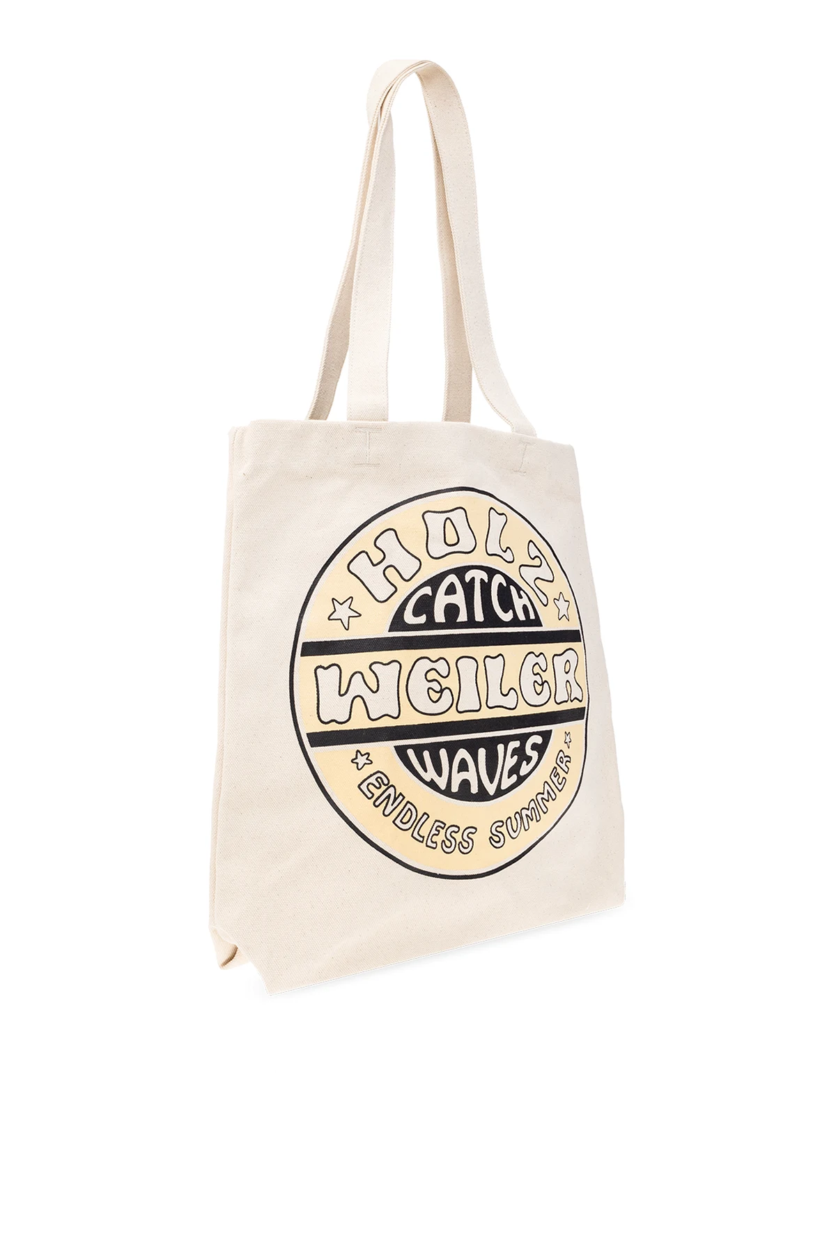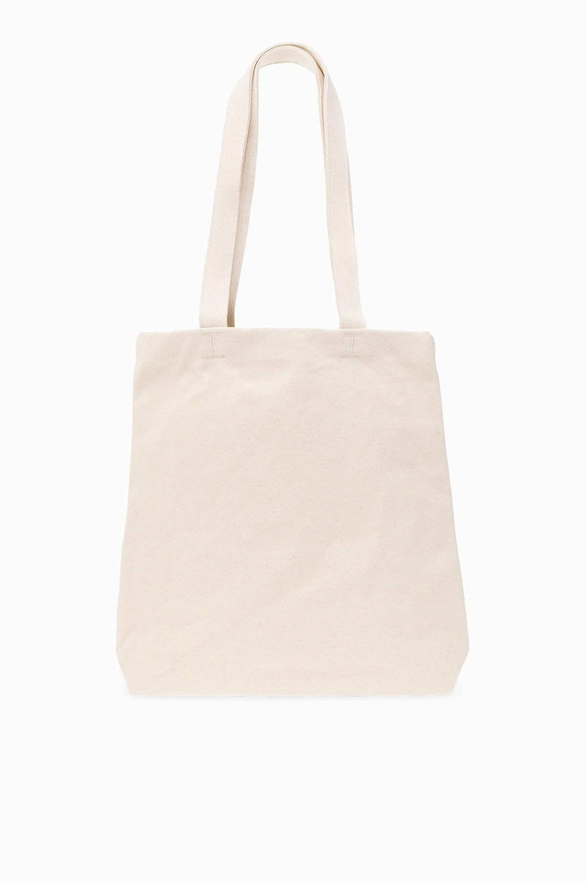 Light beige ‘Hippo’ shopper bag from Holzweiler. Crafted from cotton, this design showcases a colourful graphic pattern, two half-round handles and one internal compartment.