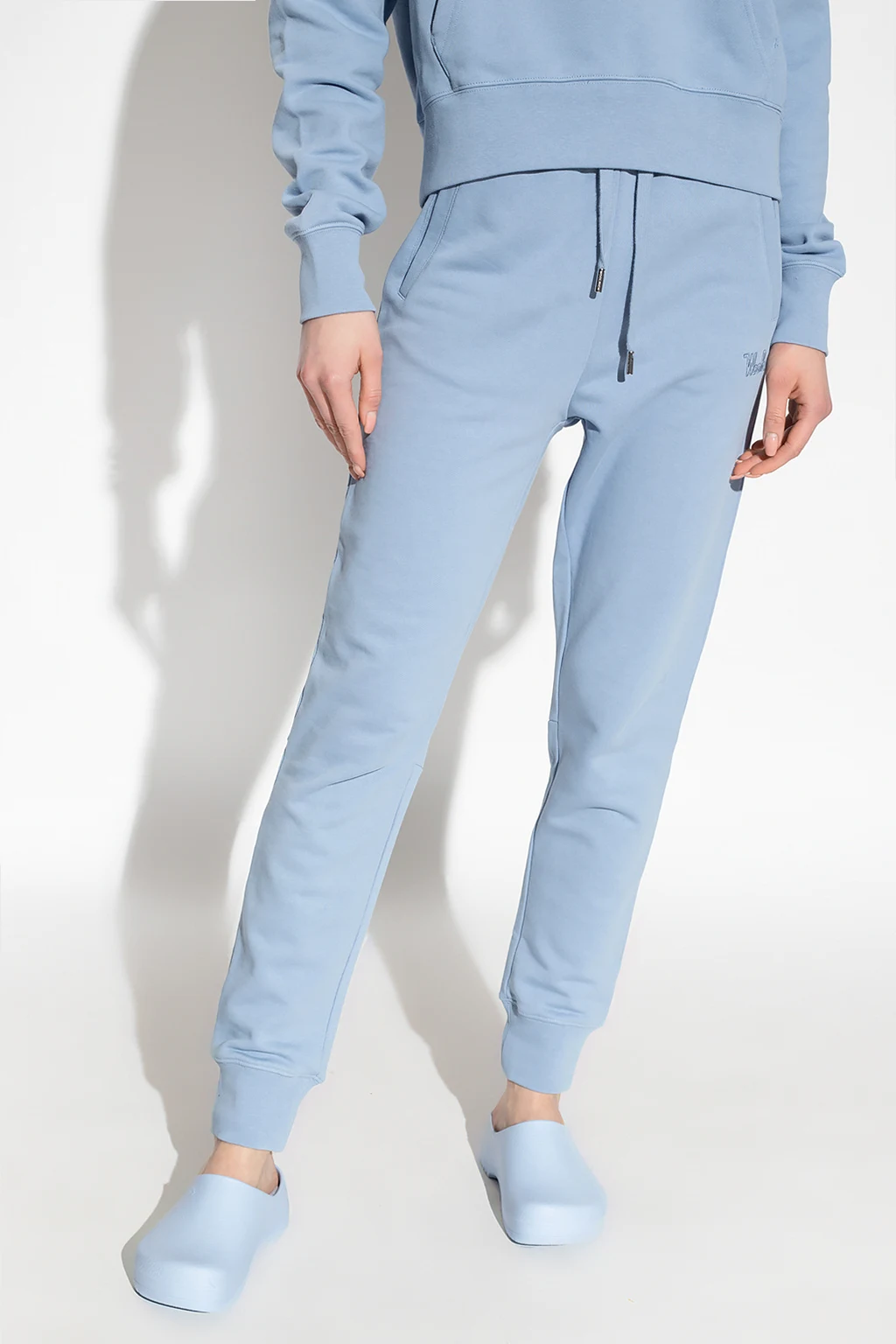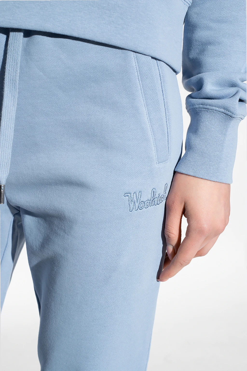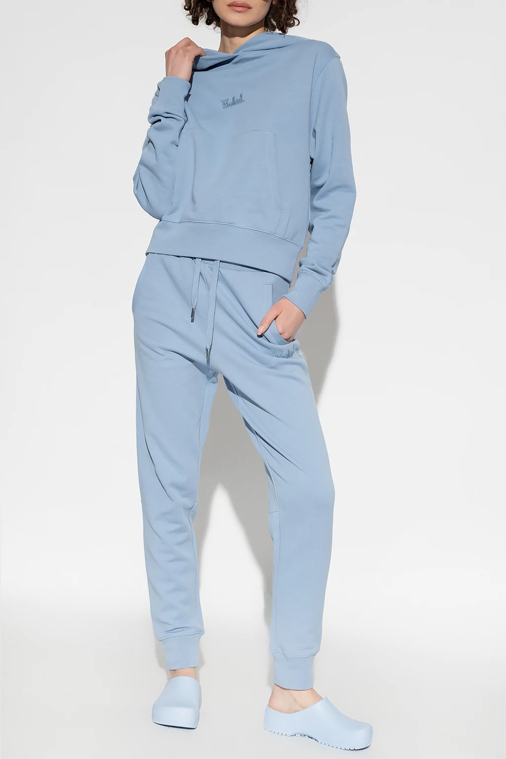 Blue sweatpants from Woolrich. Crafted from organic cotton, this pair showcases an embroidered logo pattern, a drawstring waistband, two slip pockets and elasticated cuffs.