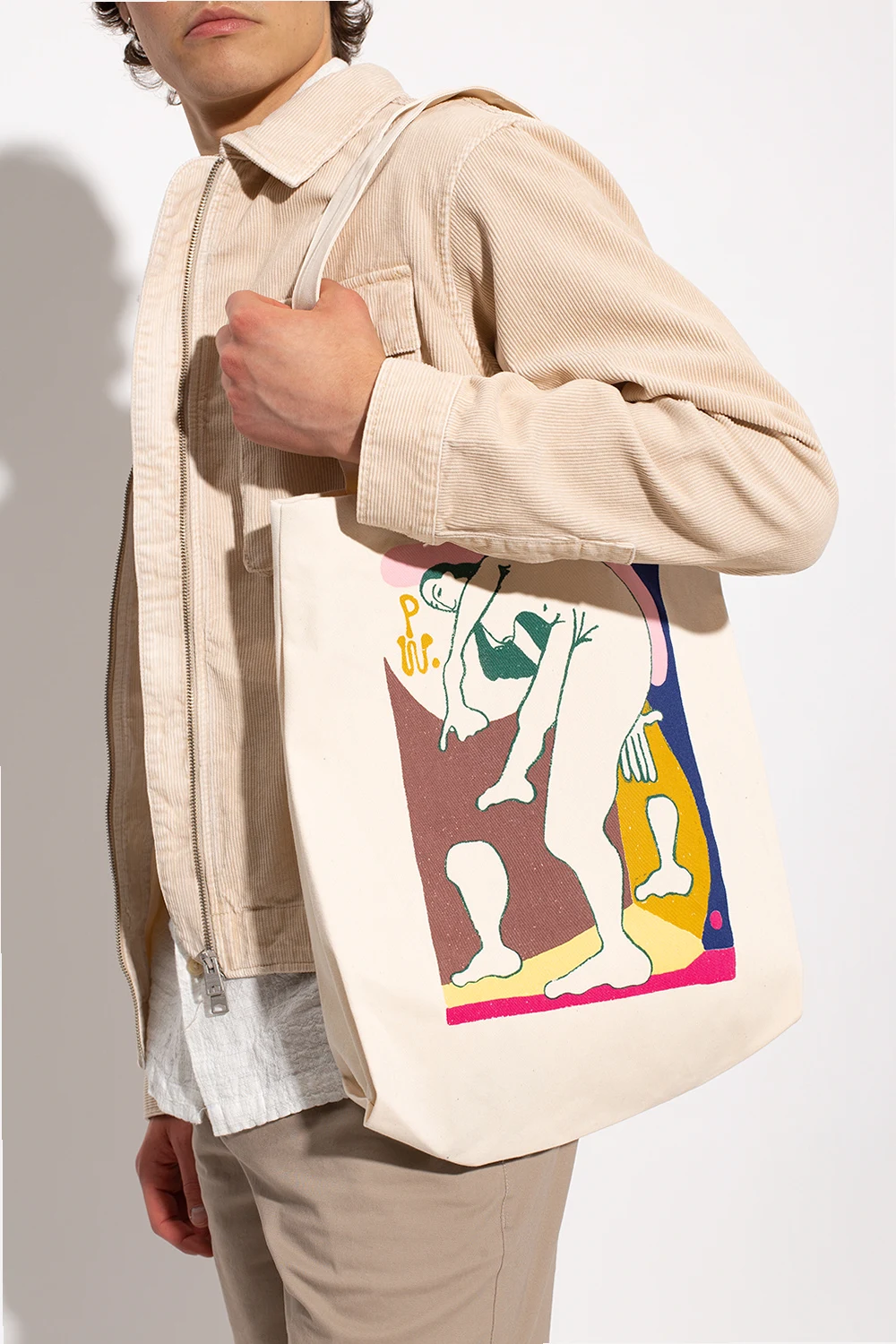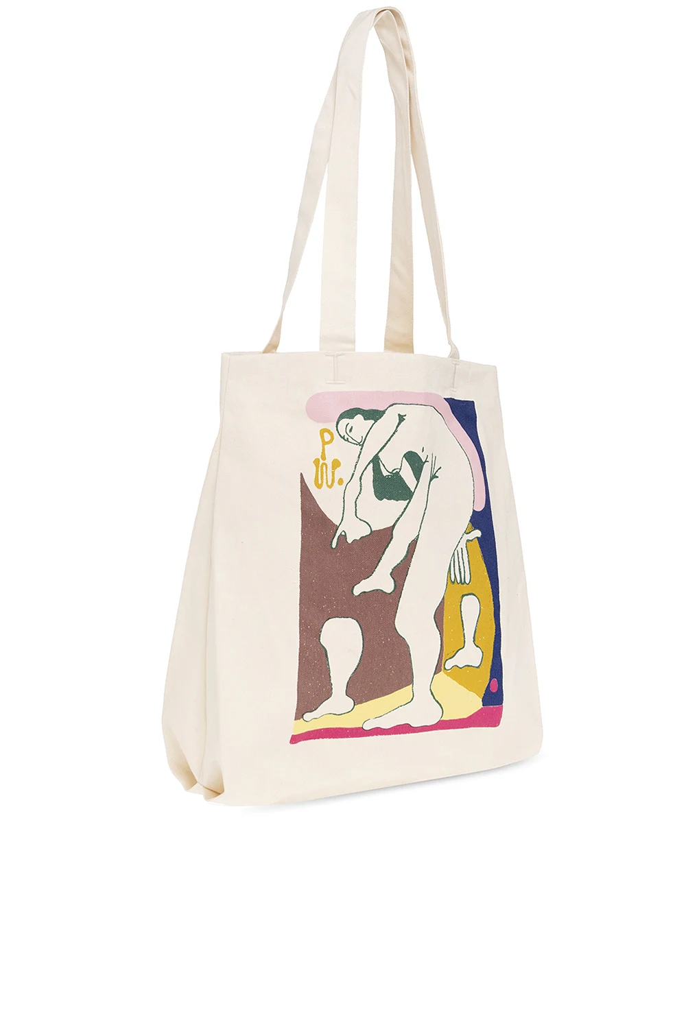 Cream shopper bag from Holzweiler. Crafted from cotton, this design showcases the brand's logo, a colourful graphic print, two half-round handles and one internal compartment.