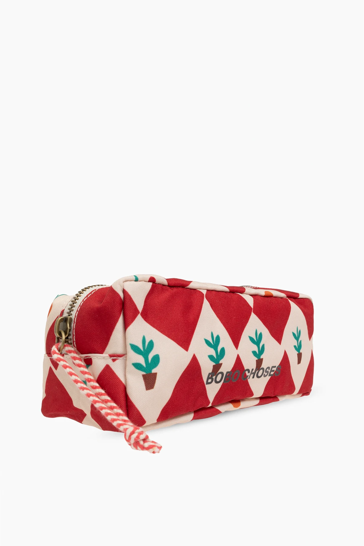 Wir präsentieren ein elegantes Federmäppchen mit dem Logo der Marke Bobo Choses , das einzigartiges Design und Funktionalität vereint. Das rechteckige Federmäppchen besticht durch ein Muster aus rot-weißen Rauten, das ein harmonisches Schachbrettmuster bildet.