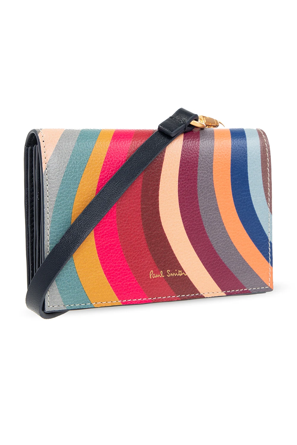 Multicoloured wallet on a strap from Paul Smith. Crafted from leather, this design showcases a gold-tone logo print, a detachable and adjustable strap, gold-tone metal hardware and an interior with three compartments and five slip pockets.