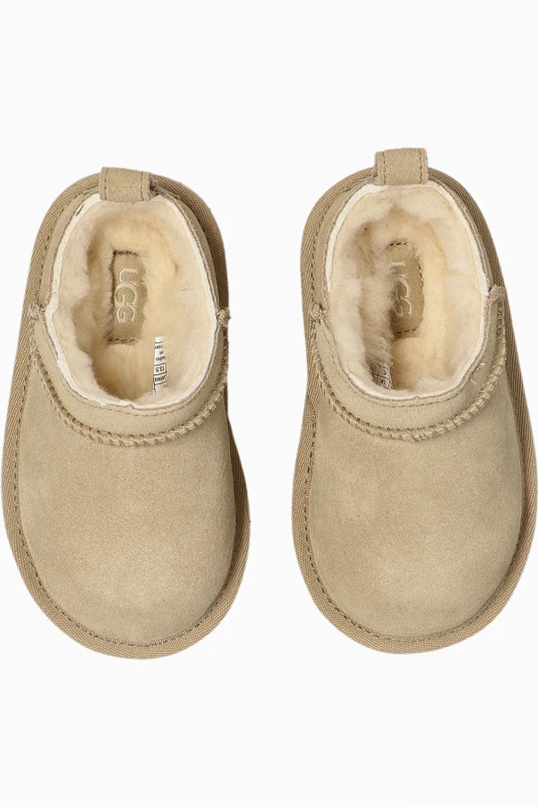 CLASSIC MICRO Schuhe verkörpern die Quintessenz kindlicher Eleganz und Komfort in der Wintersaison. Das Modell mit niedrigem, abgerundetem Schaft, der über den Knöchel reicht, ist aus luxuriösem Veloursleder in Creme gehalten. Das Innere begeistert mit besonders weichem, flauschigem Fell, das einen Anteil an natürlicher Schafwolle und Lyocell enthält, und bietet somit unvergleichliche Wärme sowie eine angenehme Temperaturregulierung.