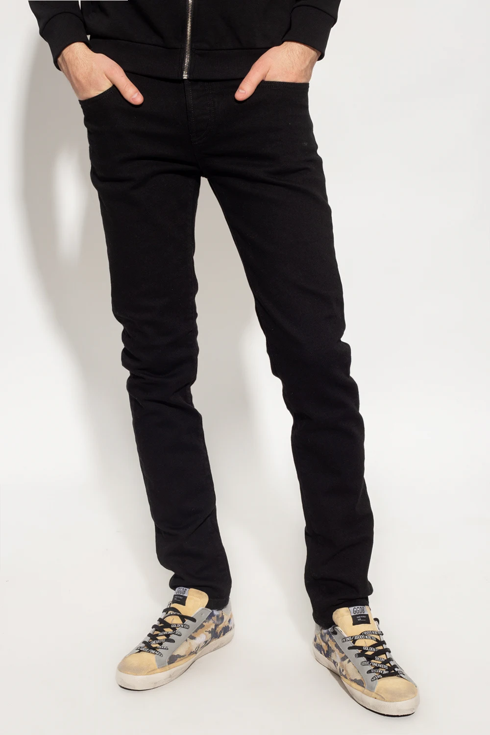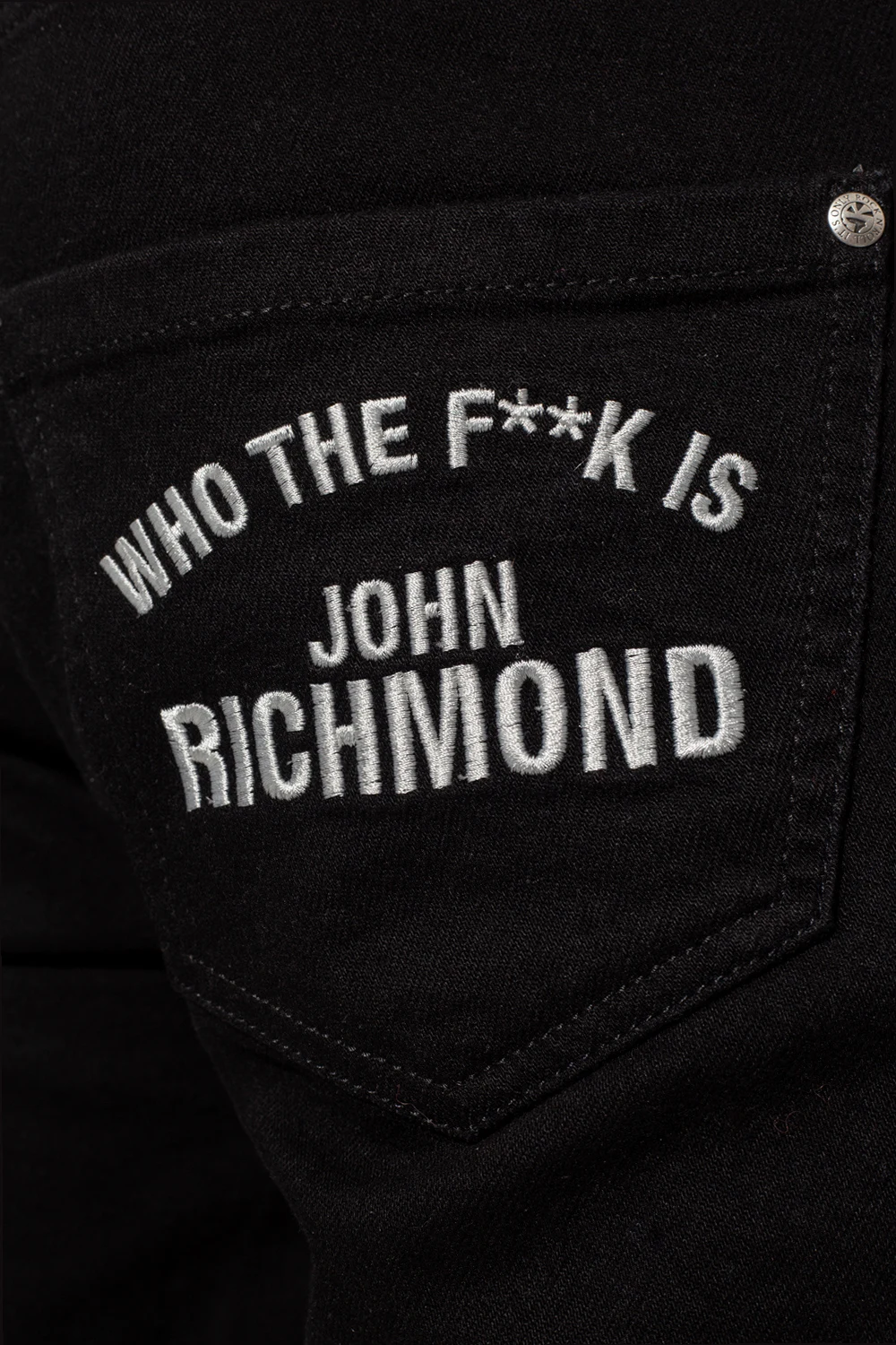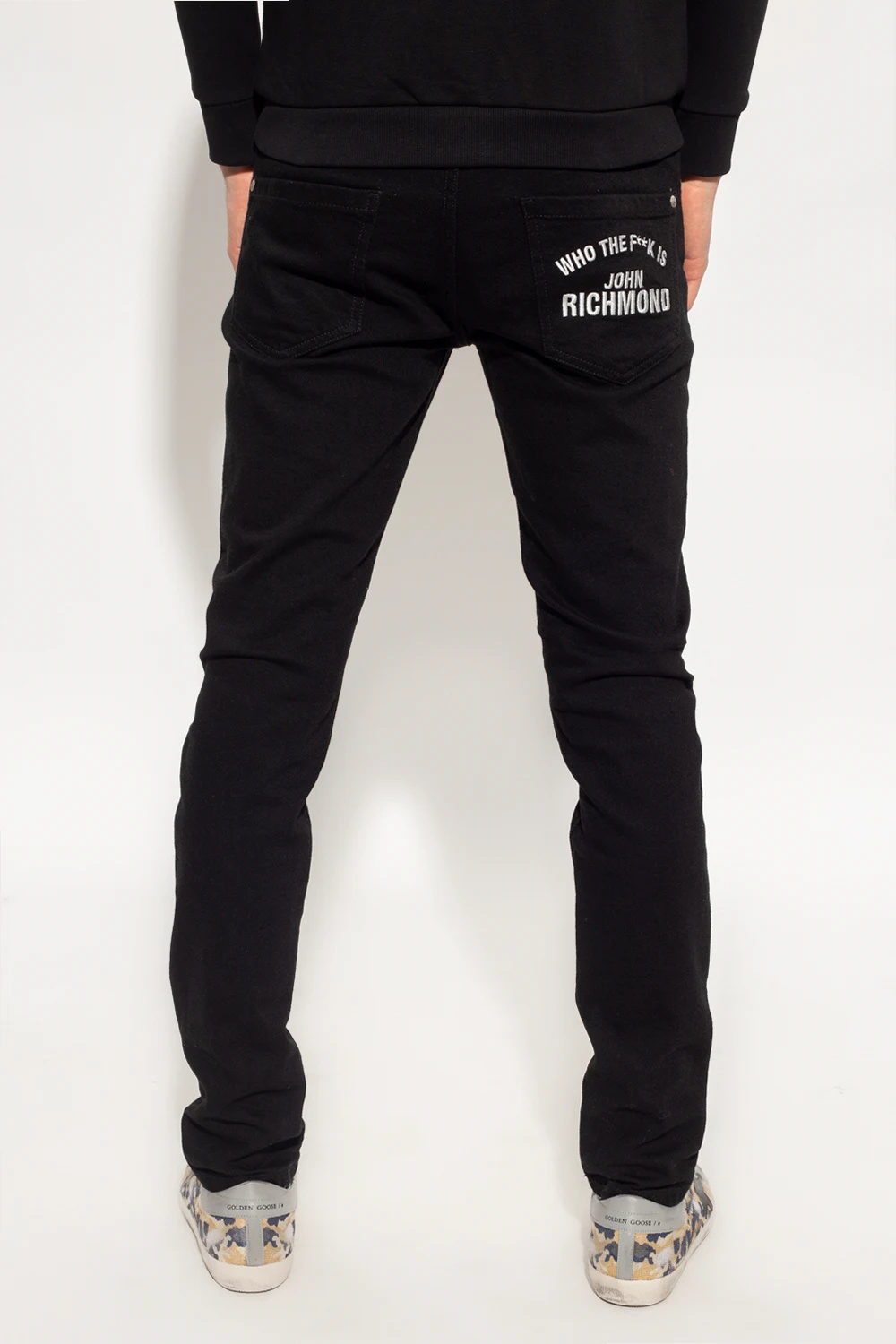 Black jeans from John Richmond. Made of cotton, this pair features button fastenings, classic five pockets and an embroidered logo.