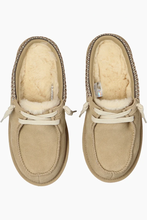 Das Innere ist mit plüschigem, cremefarbenem Fell aus Wolle und Lyocell ausgestattet und garantiert ein außergewöhnliches Wärmegefühl sowie optimale Temperaturregulierung, selbst bei intensiver Aktivität. Das dezente, geprägte Designer-Logo unterstreicht den exklusiven Ursprung, während eine dekorative Flechtung und cremefarbene Schnürsenkel dem Schuh eine originelle Note verleihen.