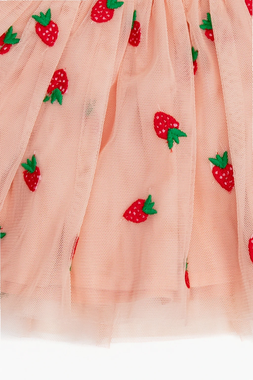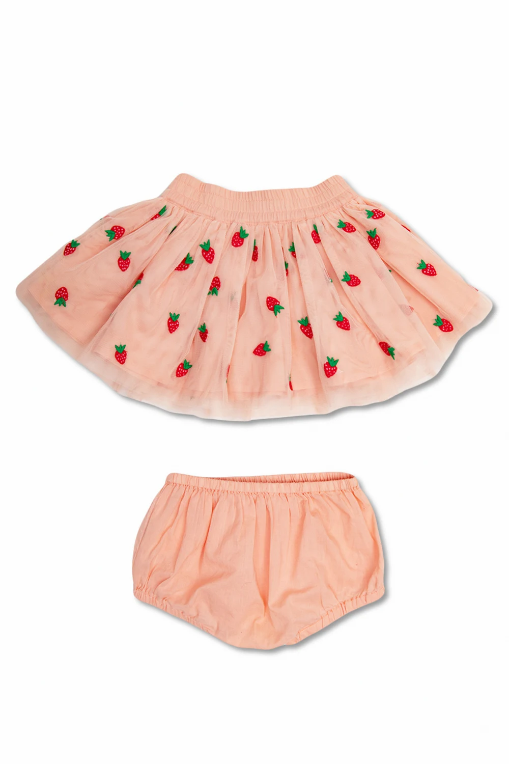 Pink skirt from Stella McCartney Kids. Crafted from tulle, this style comes with knickers with an elastic trim and features an elasticated waistband and a motif of strawberries.