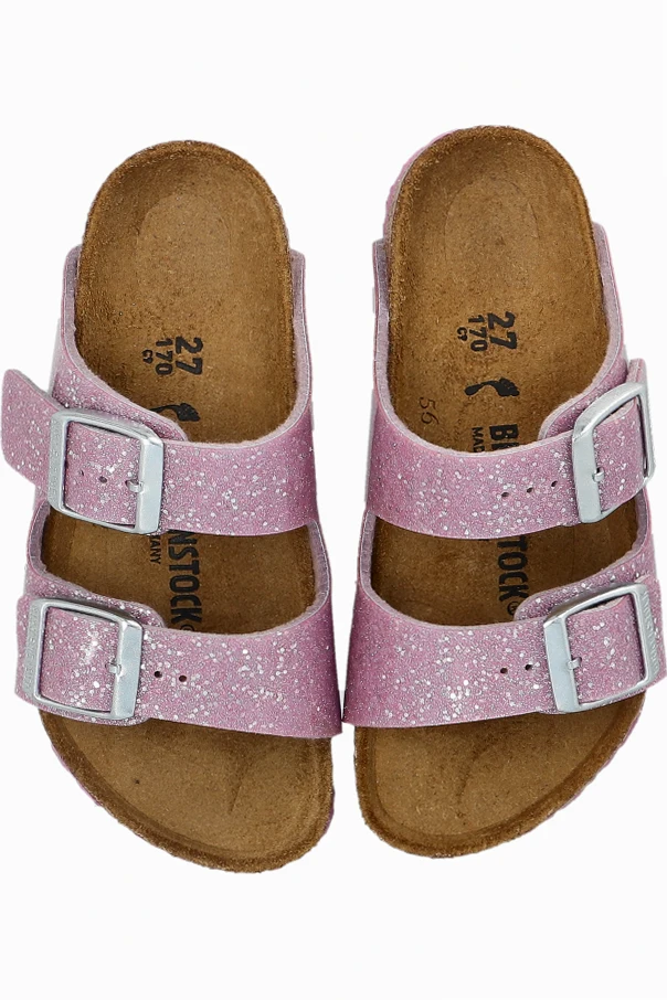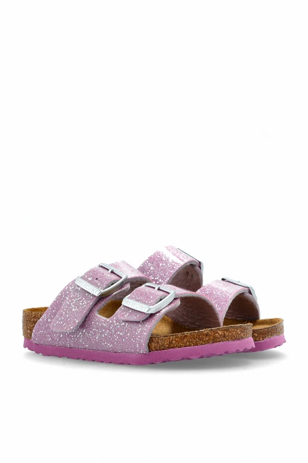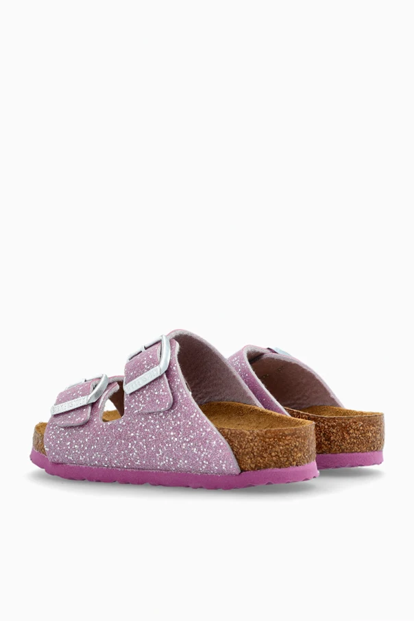 Die Arizona Kids BS Pantoletten von Birkenstock Kids sind die Essenz raffinierten Stils und Komforts in einer Version für Kinder. Der violette Farbton der Sohle harmoniert mit dem dezenten Glanz des Glitzers, der die obere Schicht der Pantoletten bedeckt und eine atemberaubend elegante Wirkung erzeugt. Die profilierte Konstruktion mit zwei breiten Riemen, die mit silbernen Metallschnallen ausgestattet sind, ermöglicht eine perfekte Anpassung an den Fuß.