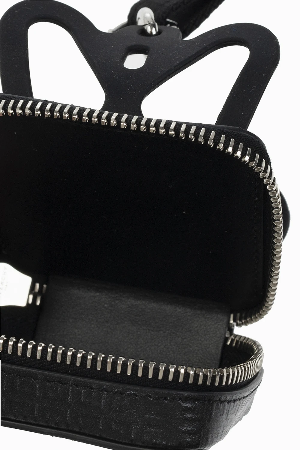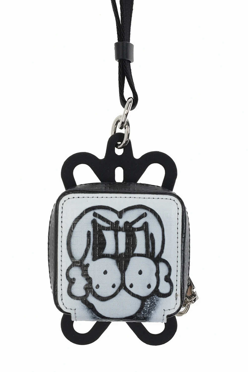 White and black iPhone and Airpods case with an adjustable strap from Givenchy x Chito. Crafted from calf leather, this item features a monogram logo, animal print, zipped Airpods case and stretch silicone piece that adapts to fit all mobile phones.