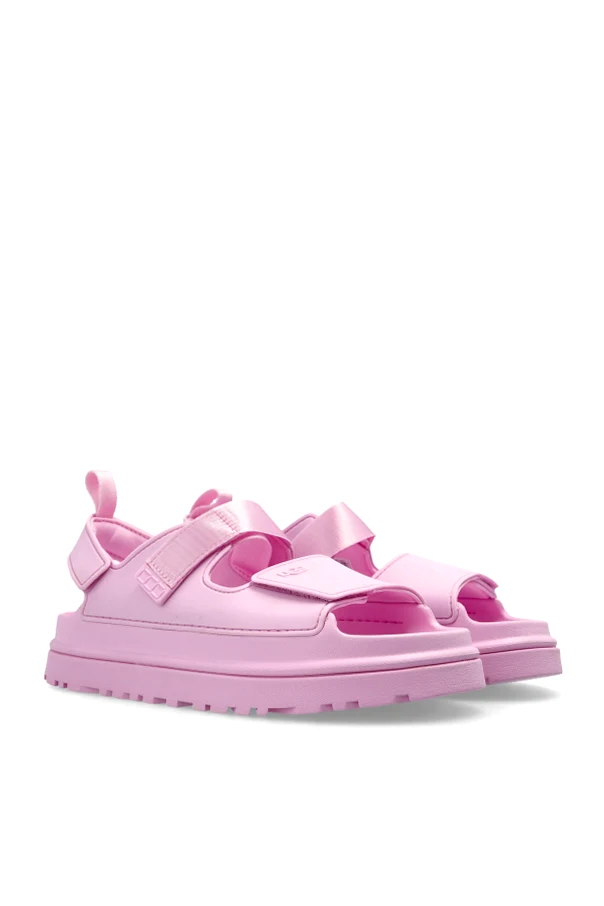 Sandalen „GOLDENGLOW“ von UGG Kids stehen für raffinierte Schlichtheit und vereinen die neuesten Trends mit bewährtem Komfort. Sie zeichnen sich durch ein modernes, sportliches Design mit einem niedrig geschnittenen Schaft aus, der für ausgezeichnete Belüftung der Kinderfüße sorgt. Der minimalistische, einfarbige Rosaton verleiht ihnen eine subtile Exklusivität, die durch die dezente Markenprägung auf dem Riemen unterstrichen wird.