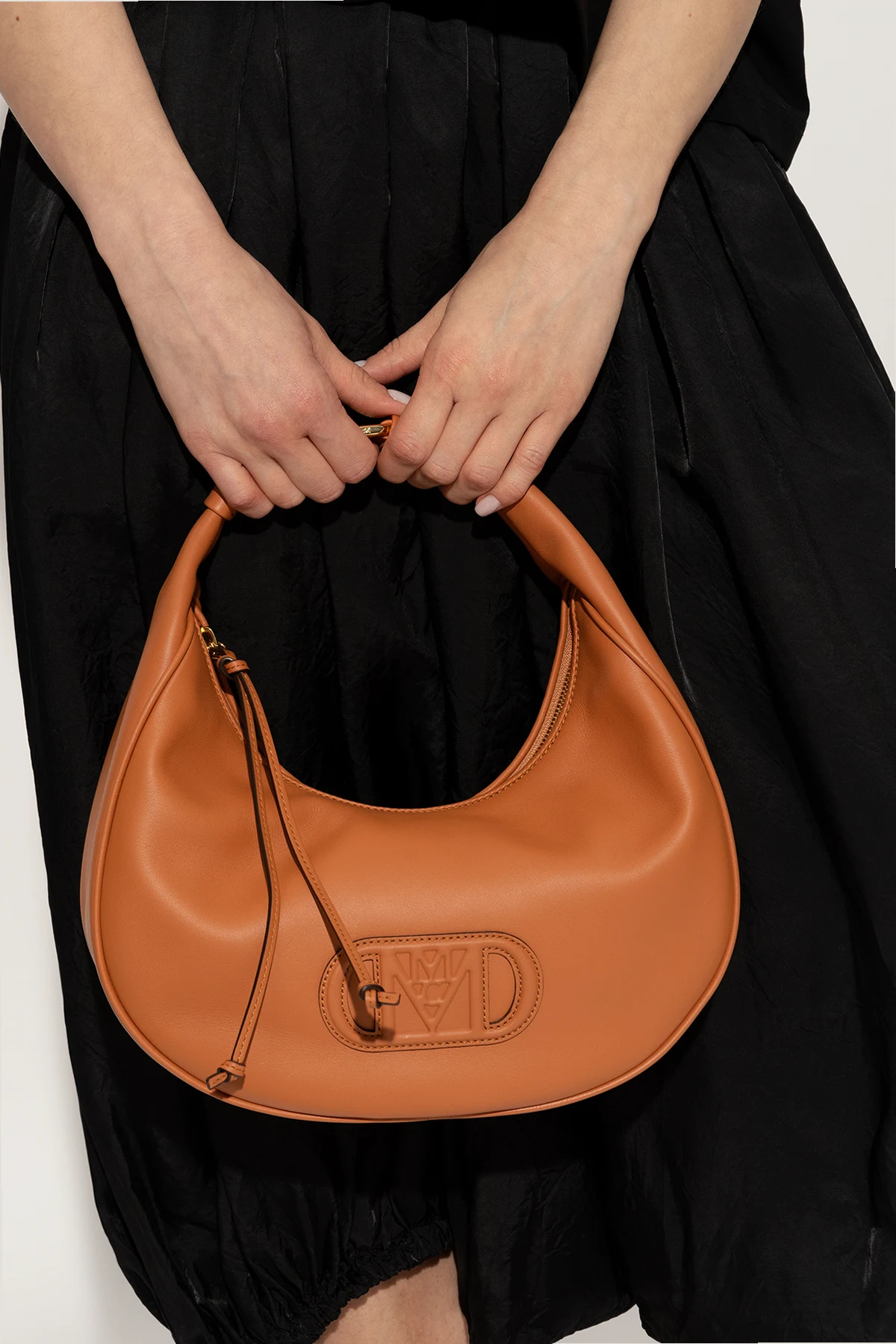 Brown ‘Travia Medium’ hobo shoulder bag from MCM. Crafted from leather, this design secures with a zip and showcases a tactile logo on the front. It is complete with an extendable short strap, gold-tone metal hardware and one internal compartment with a zip pocket.