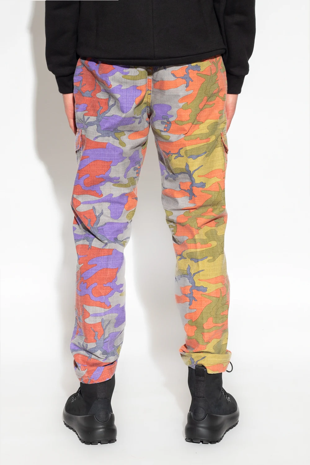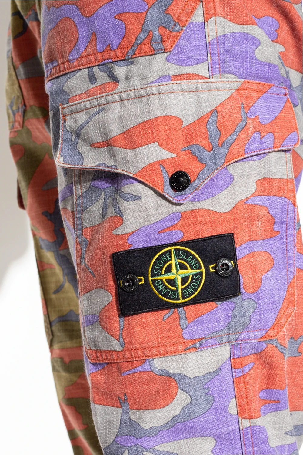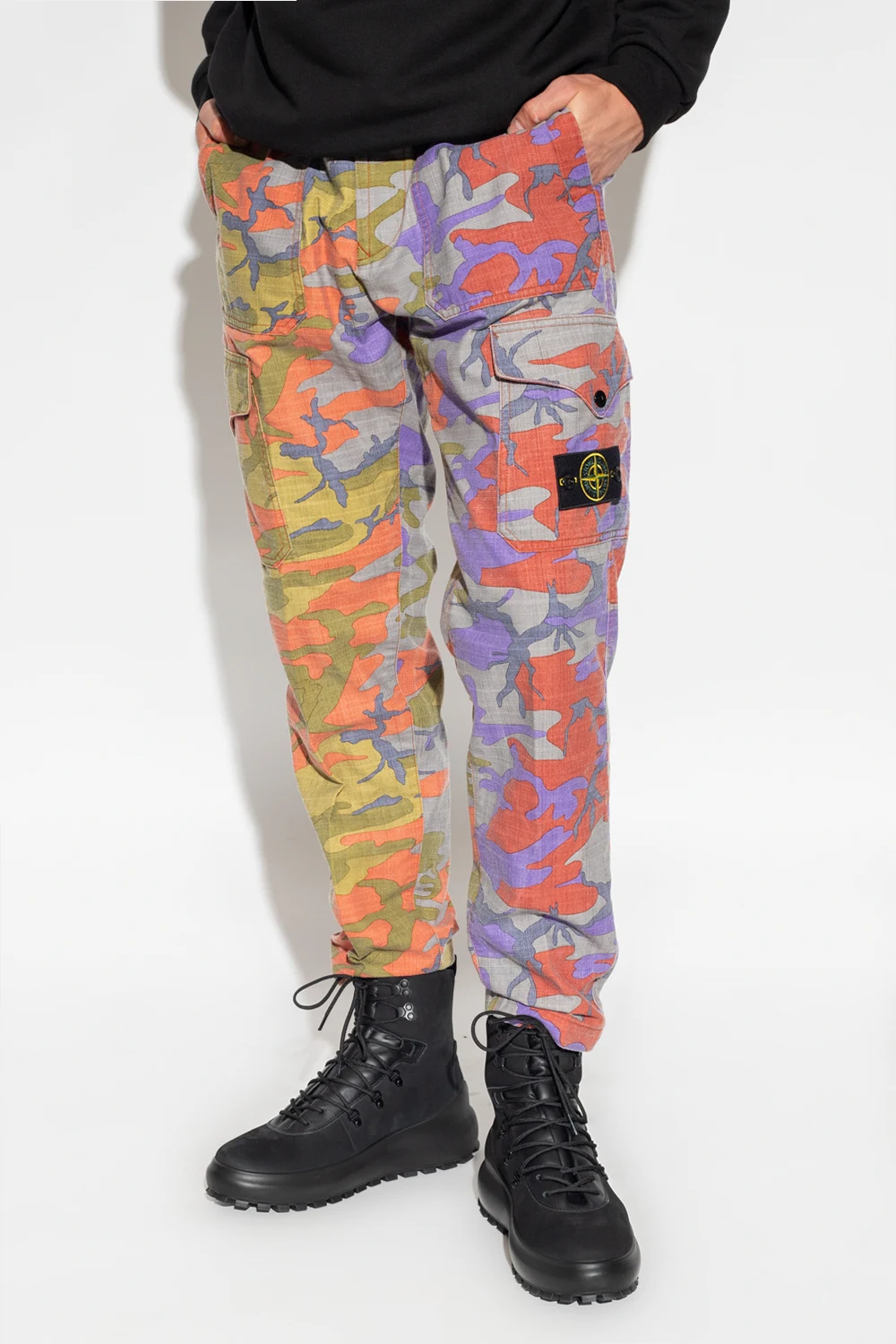 Multicolored trousers from Stone Island. Crafted from cotton, this pair has slightly tapered legs and is complete with a zip and button closure, camo pattern and multiple pockets.