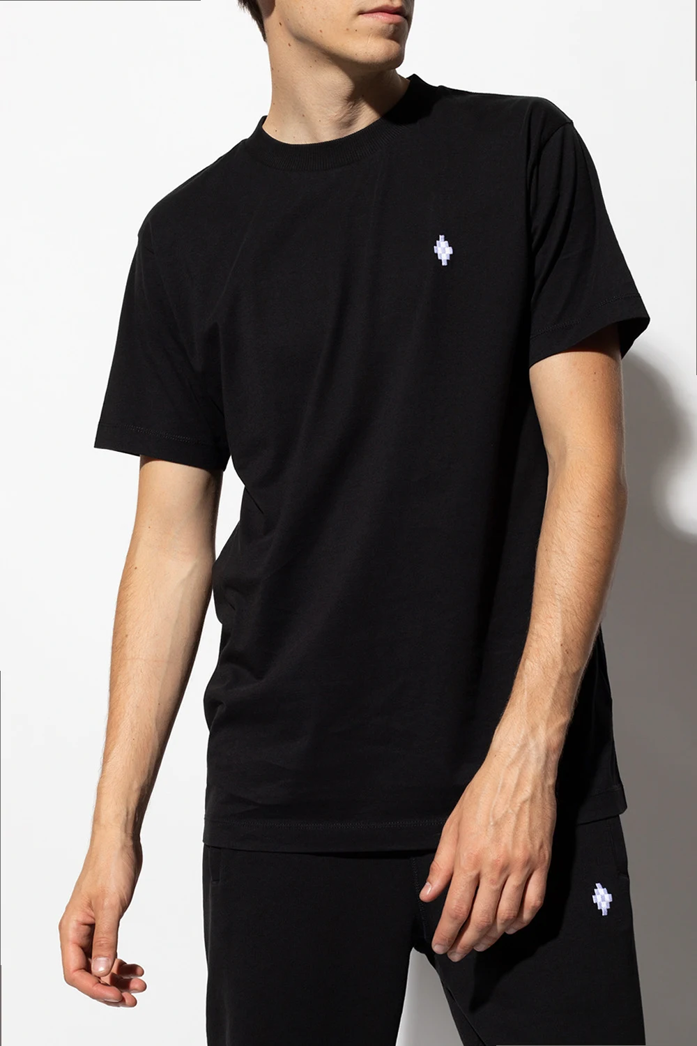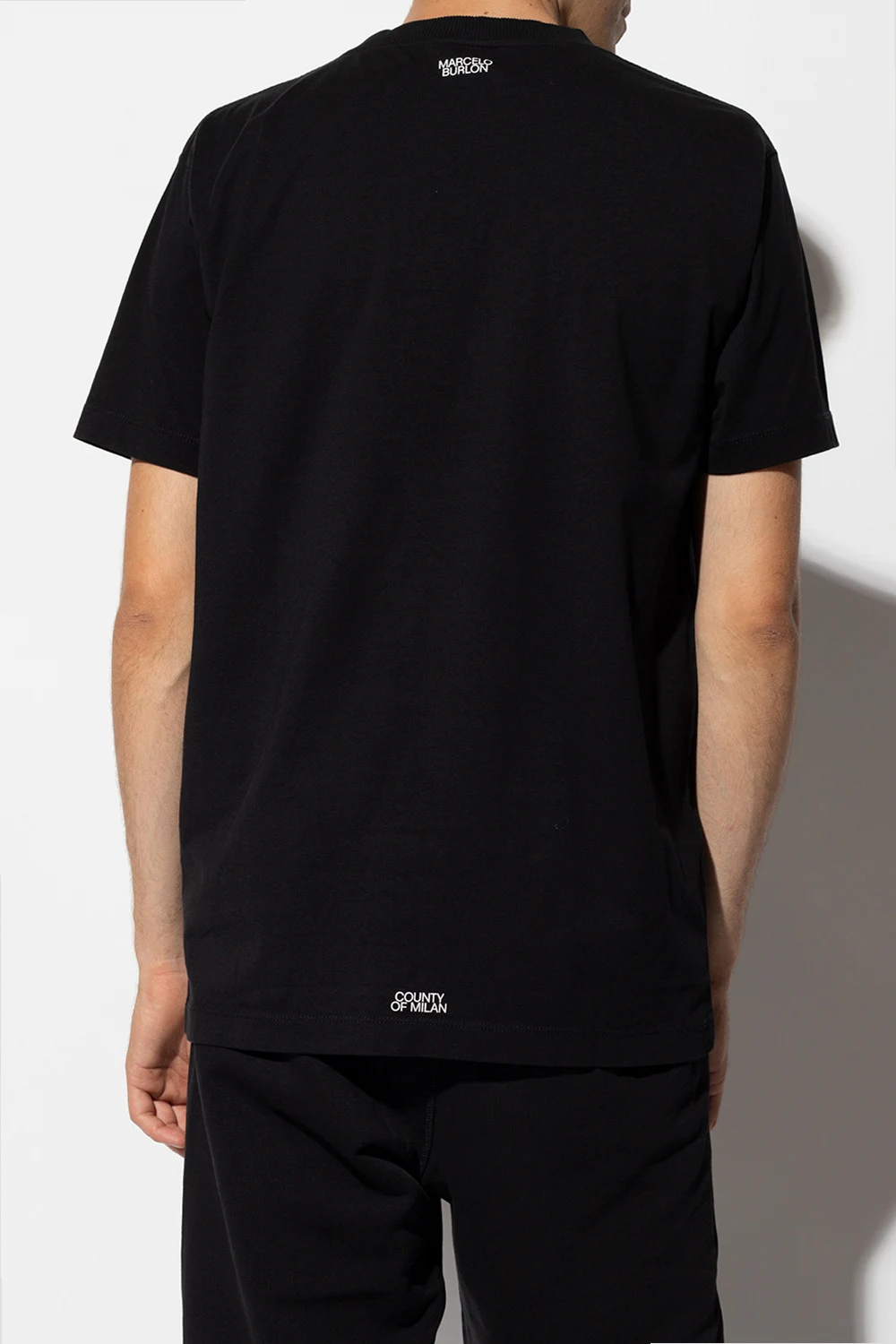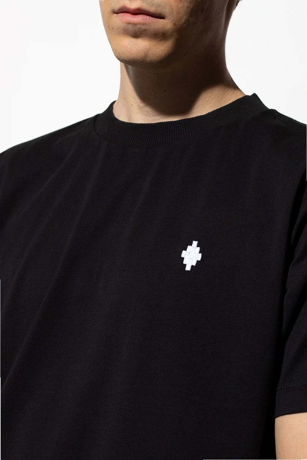 Black crewneck T-shirt from Marcelo Burlon. Made of cotton, this short sleeve design is decorated with a white logo embroidery.