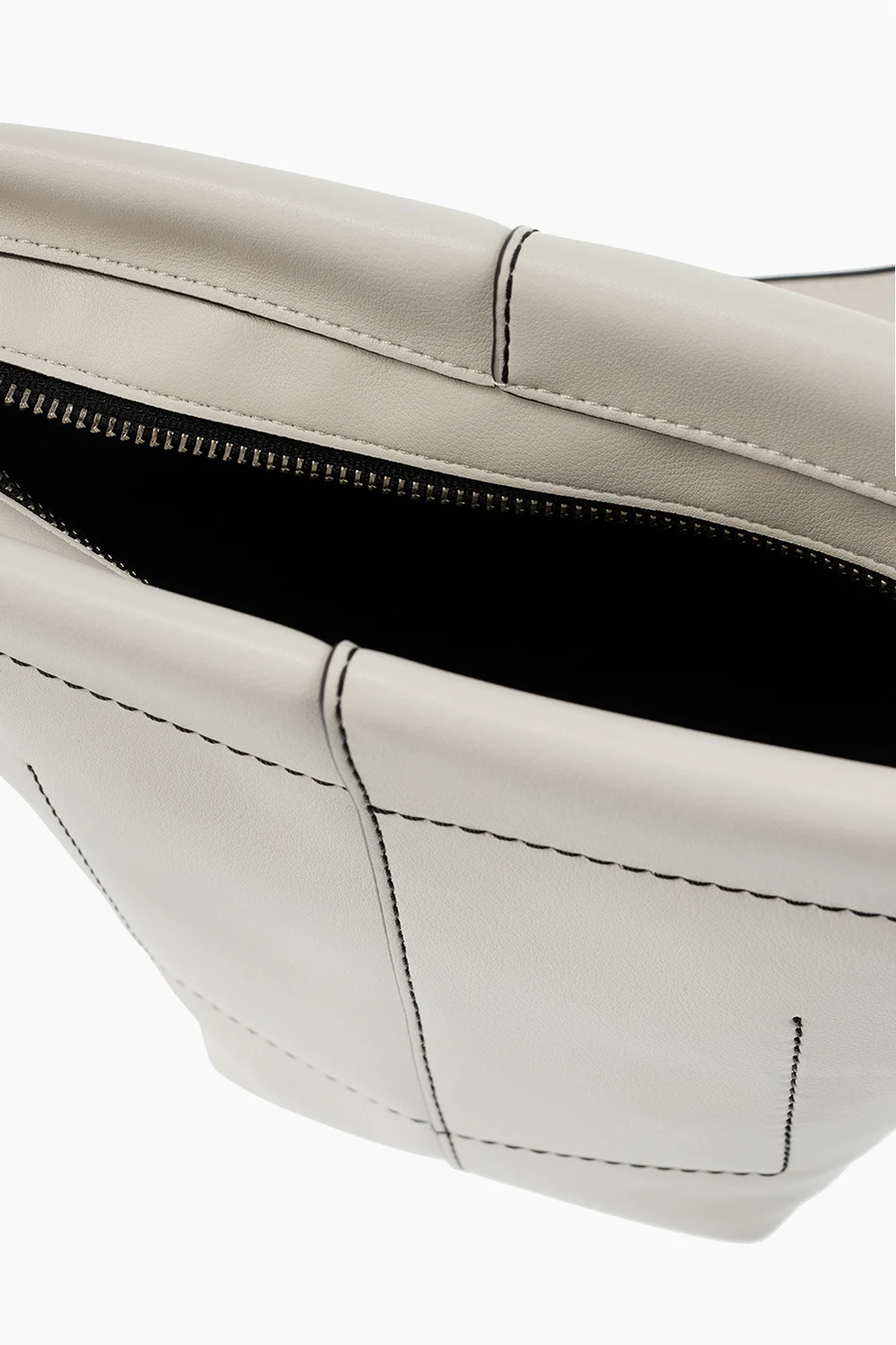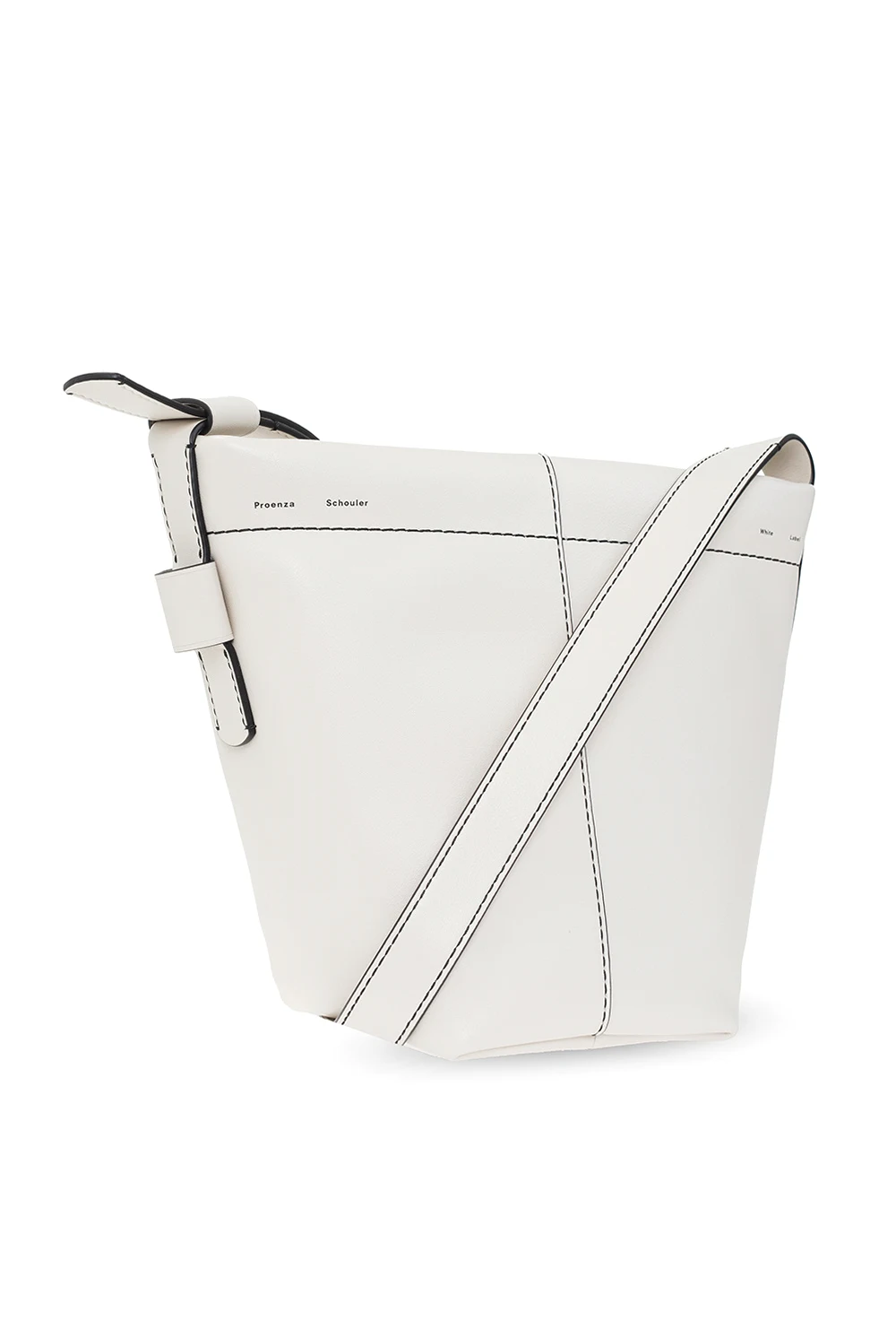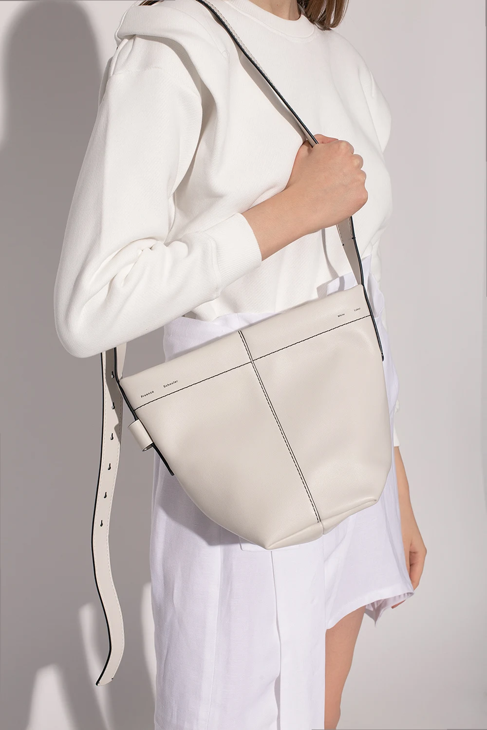 Cream ‘Barrow Mini’ shoulder bag from Proenza Schouler White Label. Made of leather. Fastened with a zip, this garment features a logo detail, contrasting stitching details in black, adjustable strap, silver-tone metal hardware and one internal compartment with one slip pocket and one zip pocket.