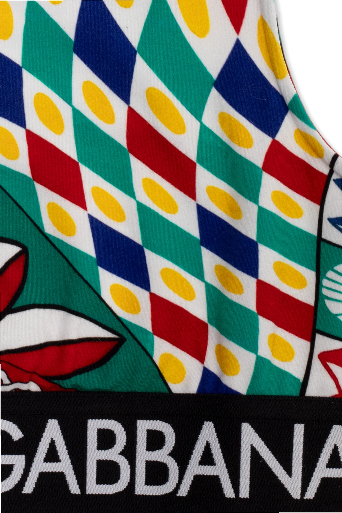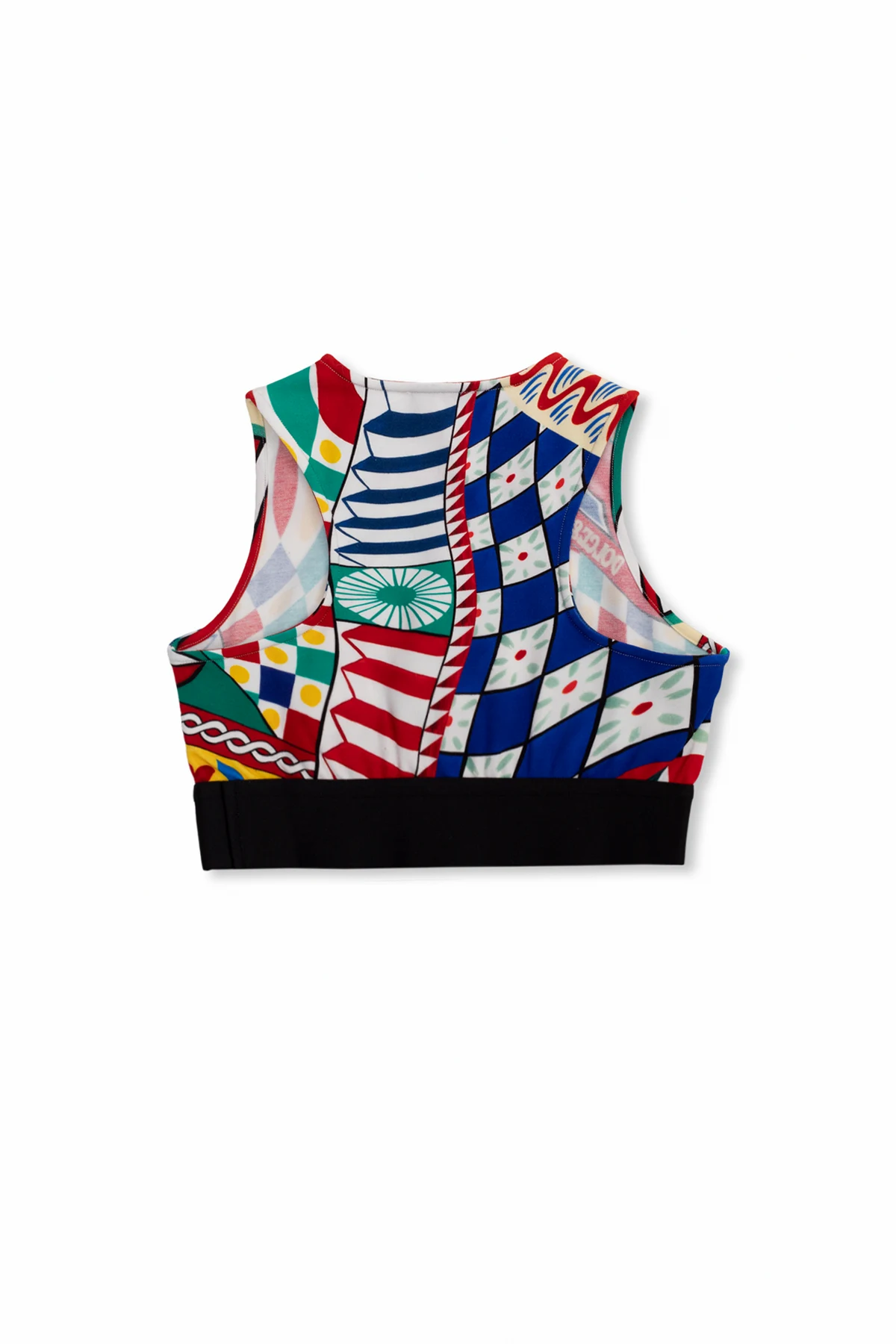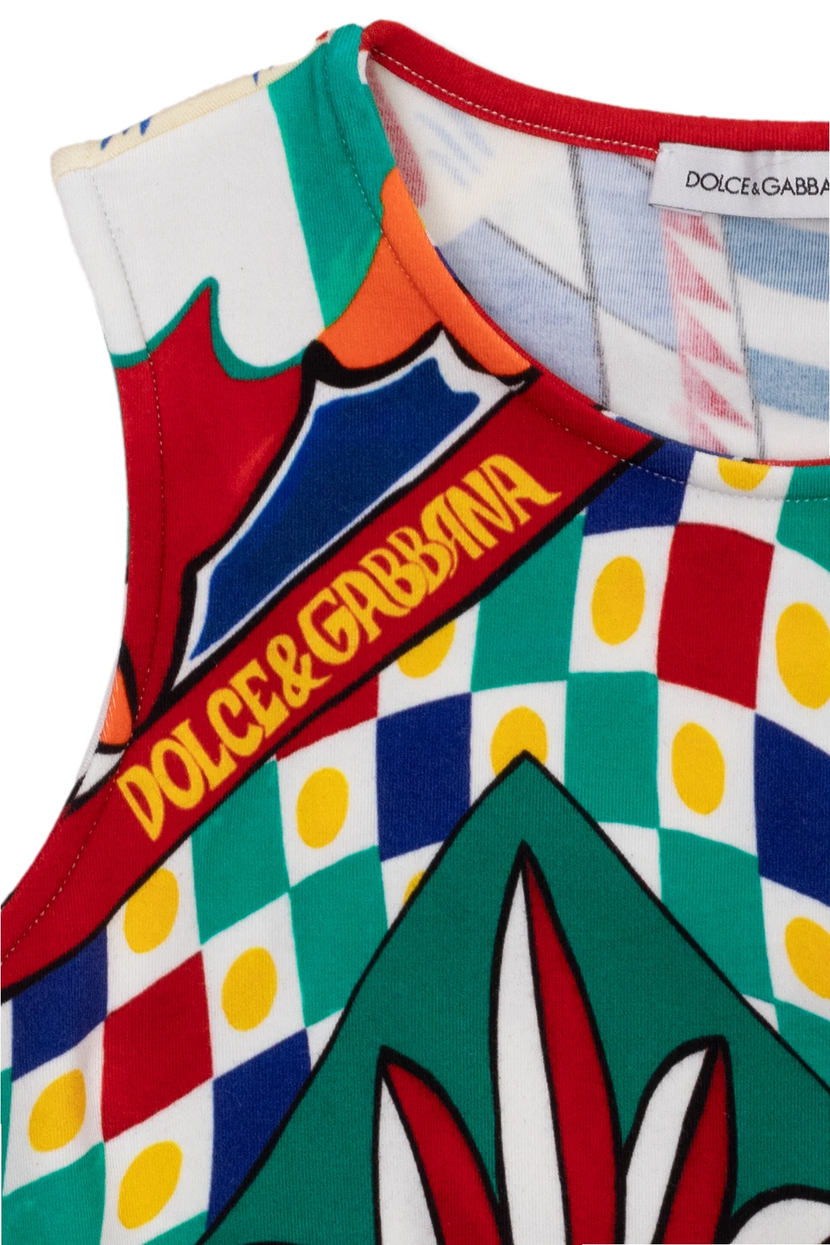 Multicoloured tank top from Dolce & Gabbana Kids. Made from cotton with a cropped fit, this style showcases the brand's ‘Carretto’ pattern and a branded elastic waistband.