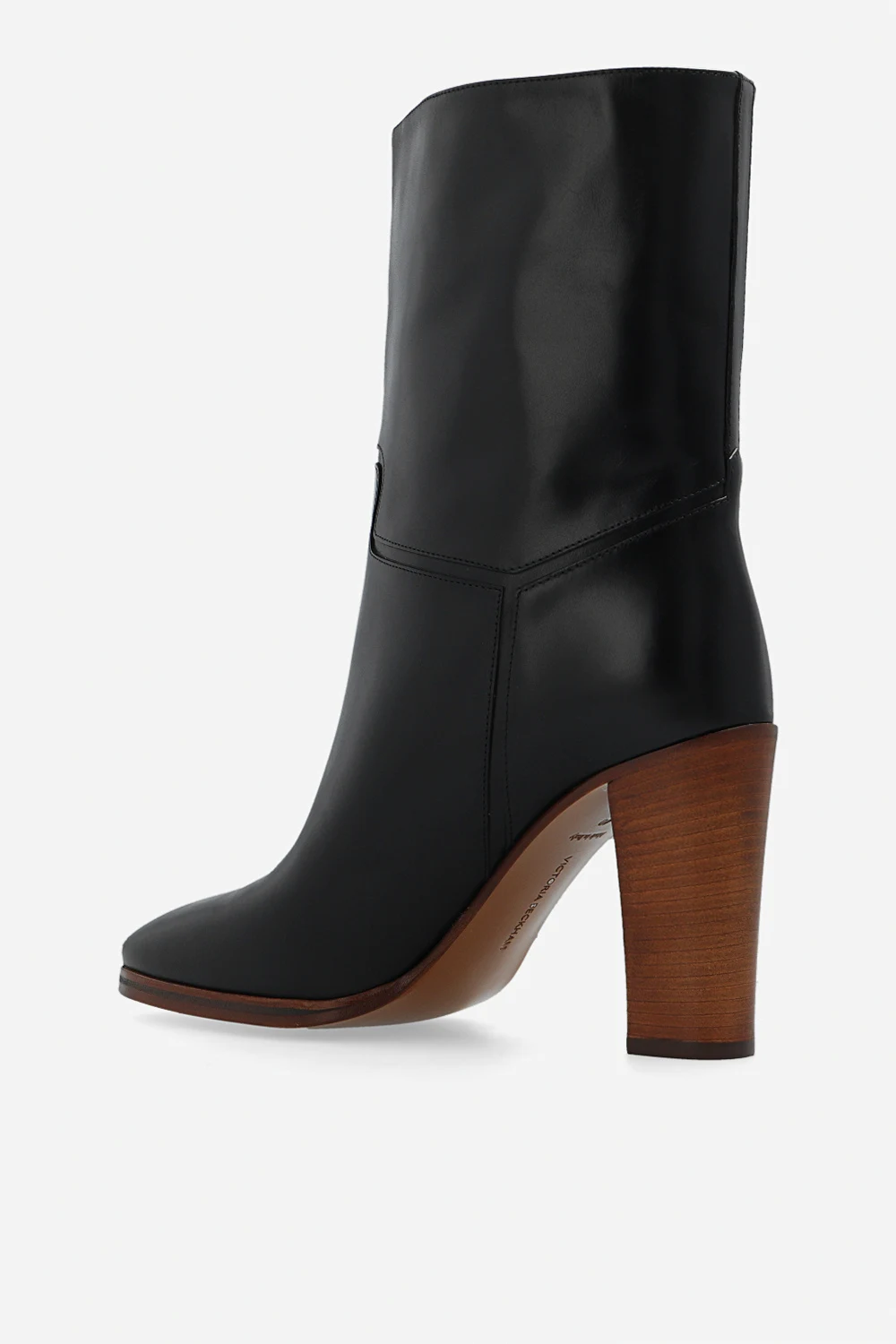 Black heeled ankle boots with a brown leather sole from Victoria Beckham. Made of leather.