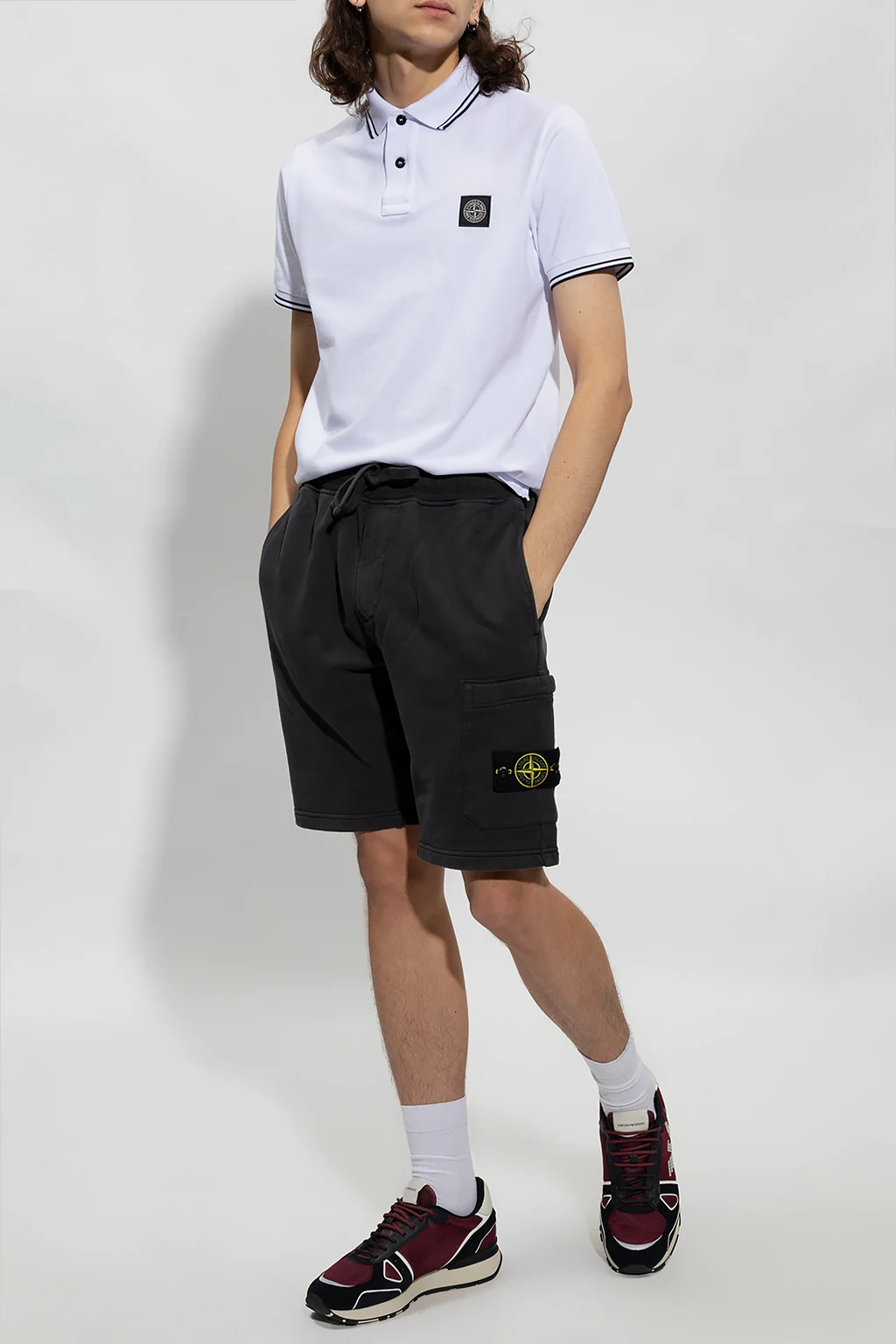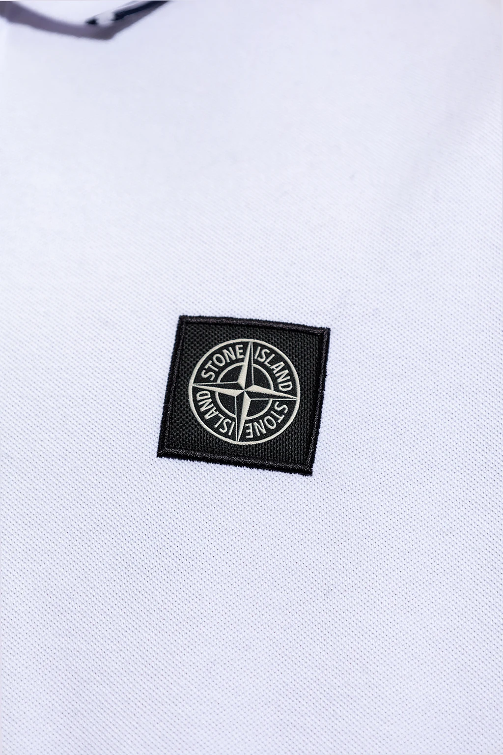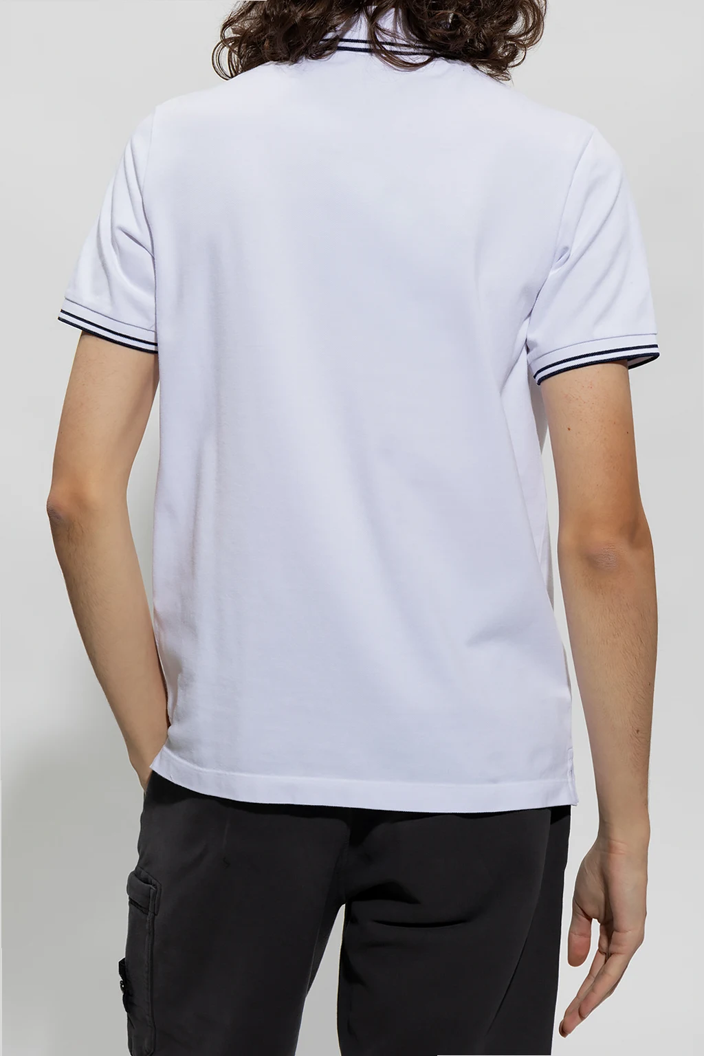 White and black polo shirt from Stone Island. Made of cotton, this short sleeve design features a buttoned collar, logo patch and side vents.