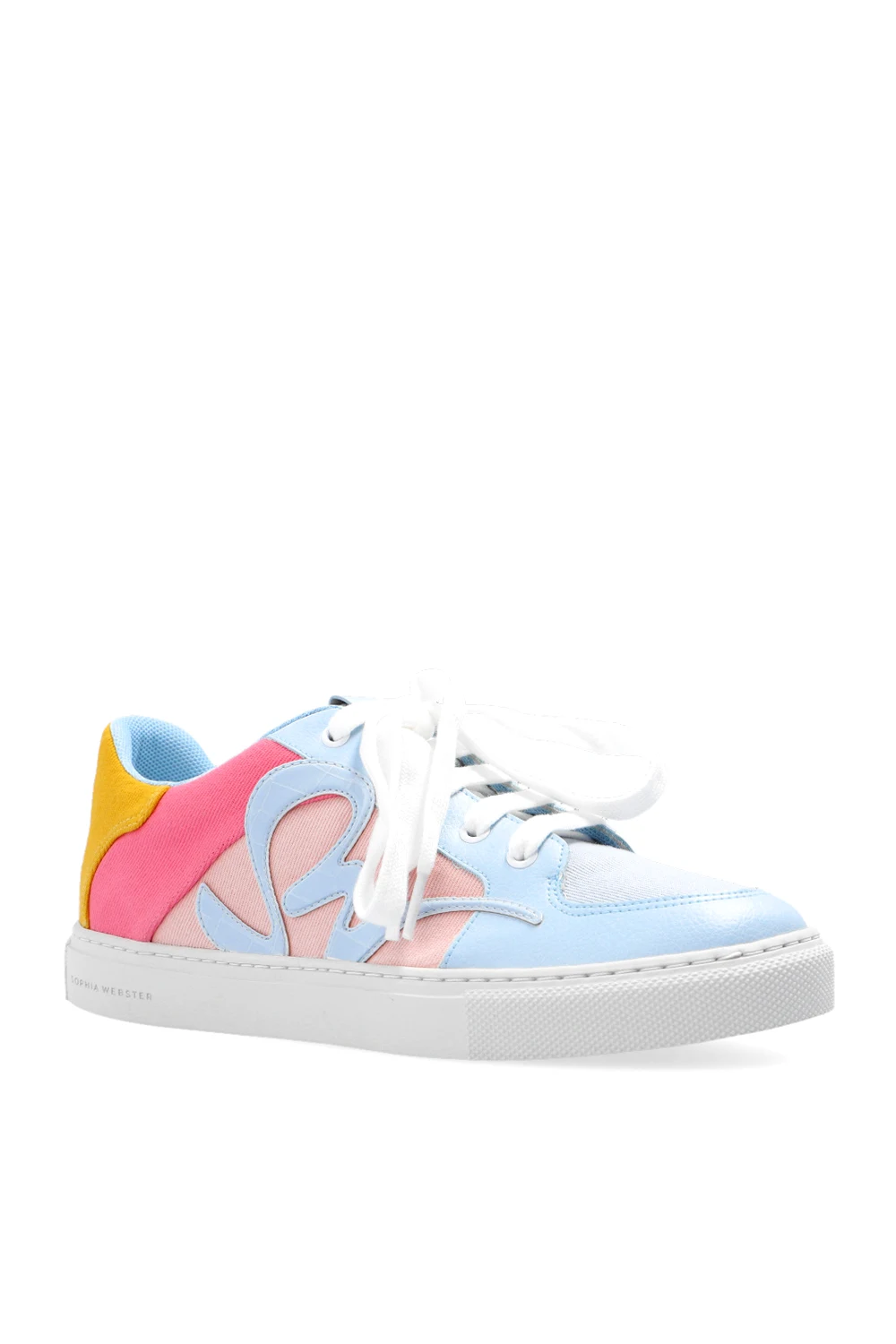 Multicolored ‘Swalk’ sneakers from Sophia Webster. Made of fabric and leather trims, this model features an SW patch made of faux leather with a crocodile skin effect, white logo heel and white rubber sole with the label’s butterfly motif and logo.